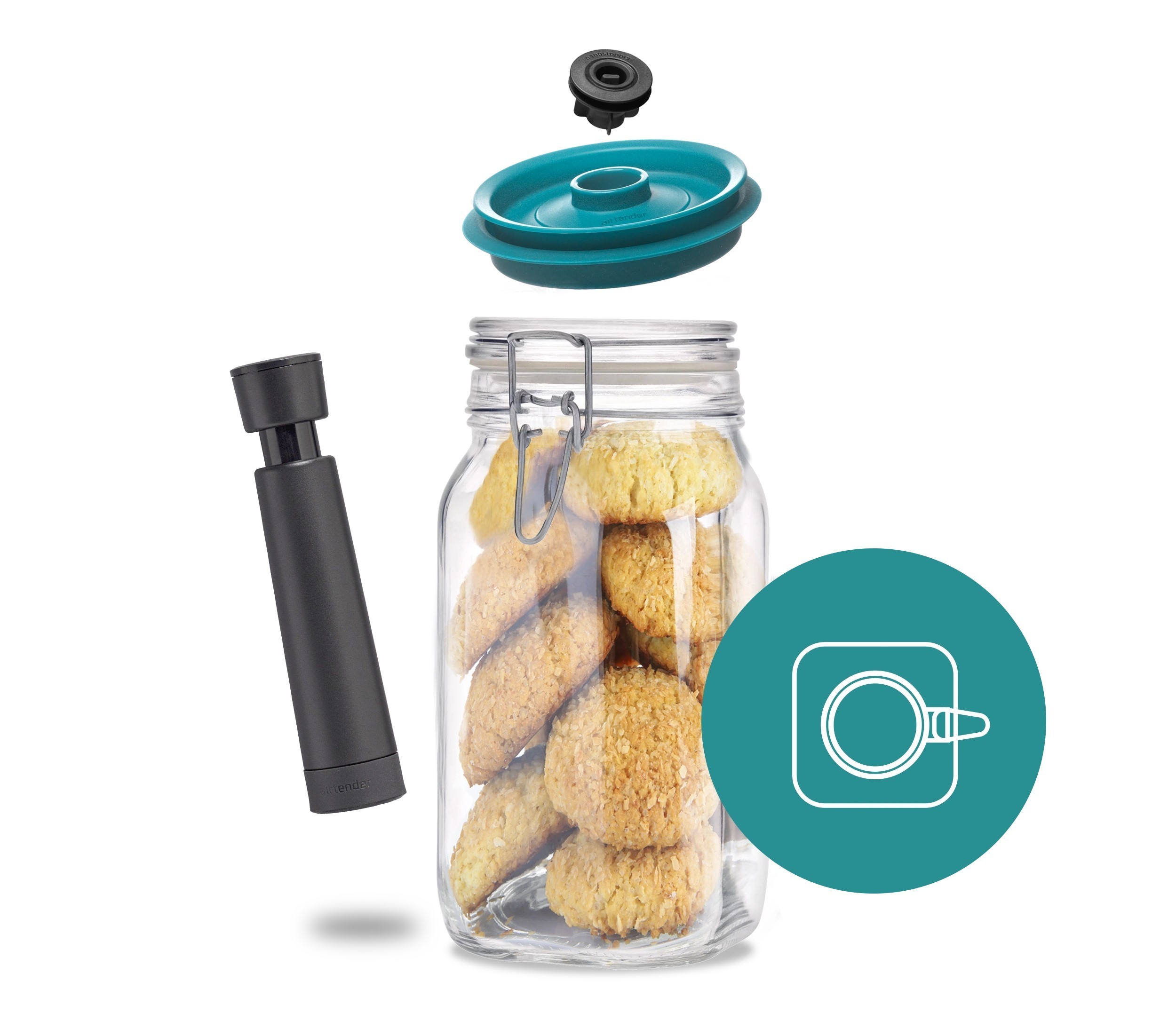 Cu kitul de vidare Airtender pentru borcane cu capac cu clemă, puteți utiliza același capac doar pentru păstrarea în vid sau etanș. Cu toate acestea, pentru o păstrare mai îndelungată, alegeți întotdeauna vidul, deoarece astfel conținutul se va păstra mai mult timp. Iar fursecurile, cerealele, nucile, biscuiții etc. vor rămâne proaspete și crocante.