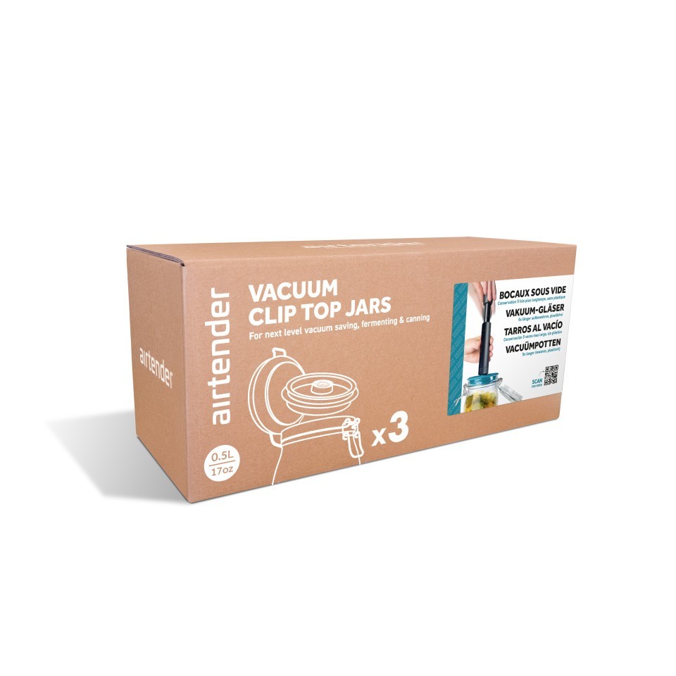 Cu kitul de vidare Airtender pentru borcane cu capac cu clema, puteti utiliza acelasi capac doar pentru pastrarea in vid sau etansa. Cu toate acestea, pentru o pastrare mai indelungata, alegeti intotdeauna vidul, deoarece astfel continutul se va pastra mai mult timp. Iar fursecurile, cerealele, nucile, biscuitii etc. vor ramane proaspete si crocante.