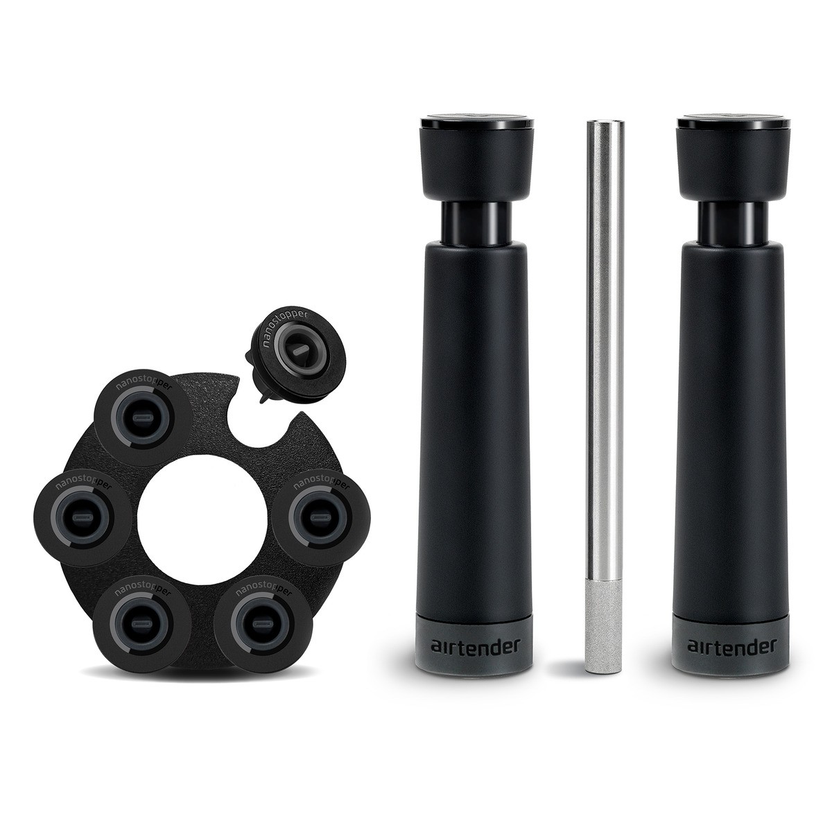 Setul pentru iubitorii de vin Airtender, acoperă atât nevoia de aerare a vinului pentru potențarea aromelor cât și de vidare a acestuia pentru ca vinul dumneavoastră preferat să reziste de până la 5 ori mai mult timp.