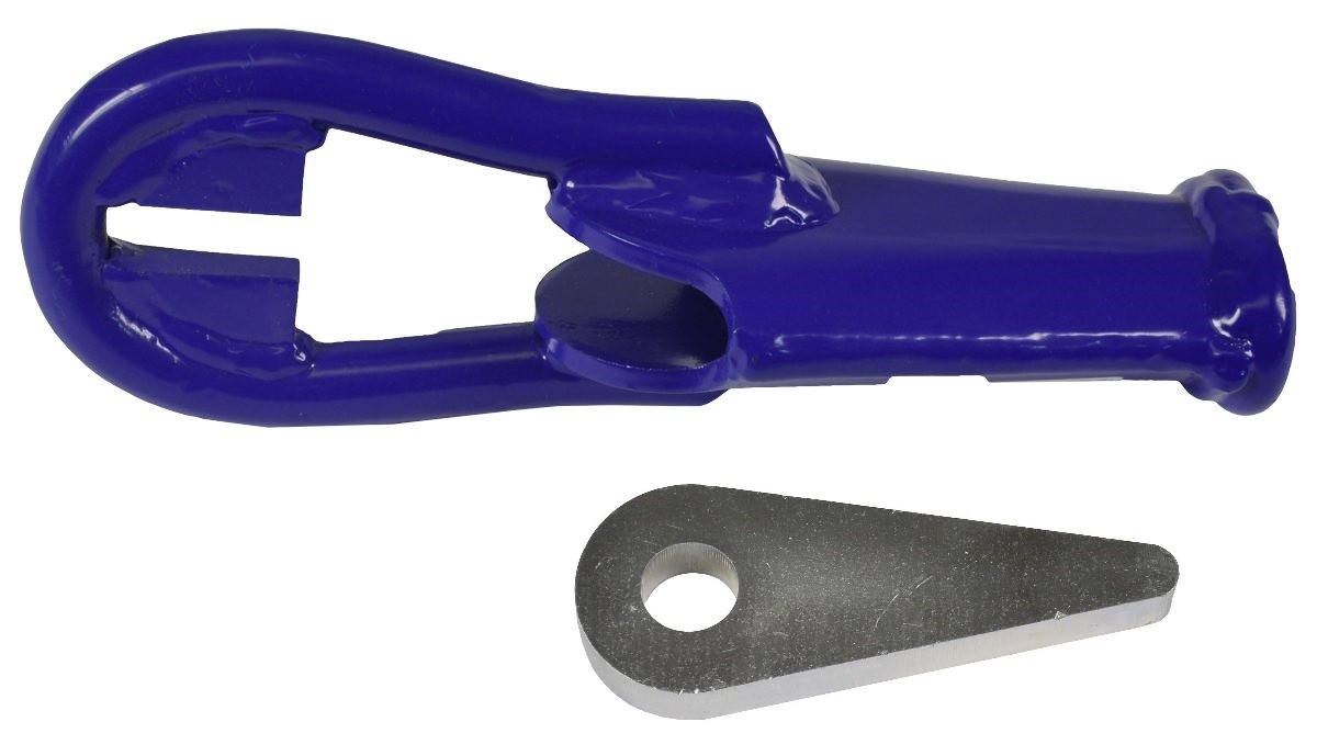 Blocator de capat pentru cabluri prevazut cu pana si fanta de agatare a lanturilor forestiere. Rezistenta blocatorului este egala cu cea a cablului utilizat.