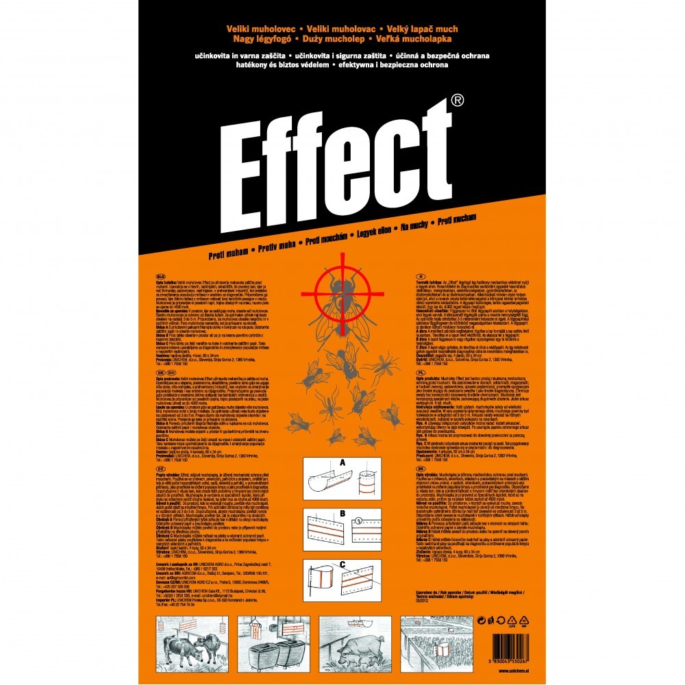 Effect Flytrap este o protectie mecanica eficienta impotriva mustelor. Ruloul adeziv se atarna, unde exista o infestare mare cu muste. In functie de gradul de infestare suplimentai cu mai multe rulouri. Este fabricat din adezivi speciali rezistenti la aer, care asigura o protectie de lunga durata.