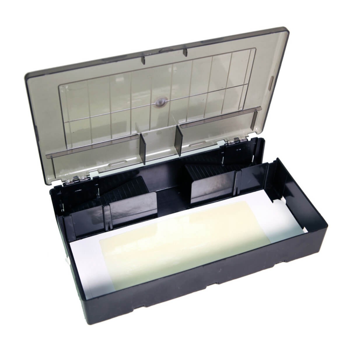 Capcană șoareci multicaptură, confecționată din plastic durabil, echipată cu un capac transparent pentru o monitorizare ușoară. Sistemul de intrare permite șoarecilor și șobolanilor mici să fie prinși în interior iar părțile laterale, lângă bază, permit insectelor târâtoare să intre. Pentru o mai mare eficiență, utilizați împreună cu placa adezivă pentru șoareci și insecte târâtoare.