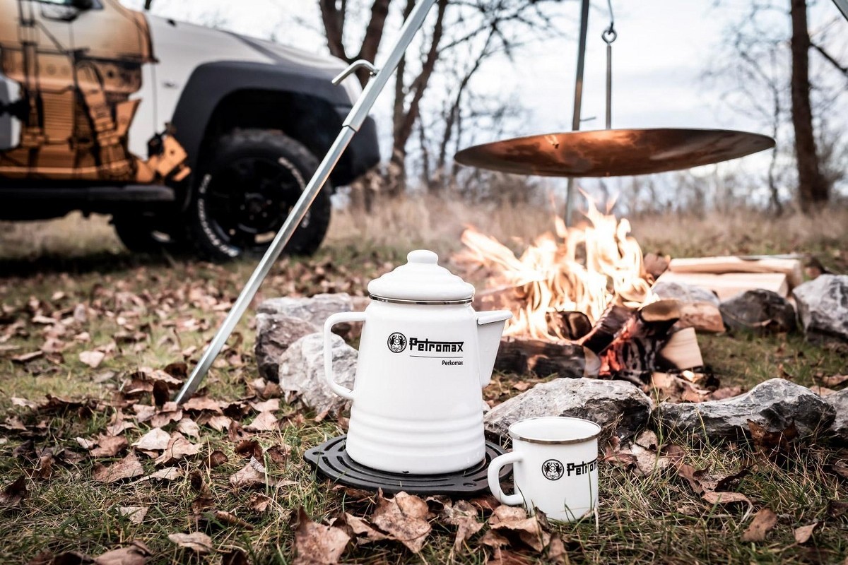 Cana camping Petromax este o cana vintage, emailata, de culoare alba, din care se poate savura in aer liber o cafea, un ceai sau orice bautura calda sau rece. Combinarea materialelor precum sticla si otel au ca rezultat un material robust, usor de curatat.