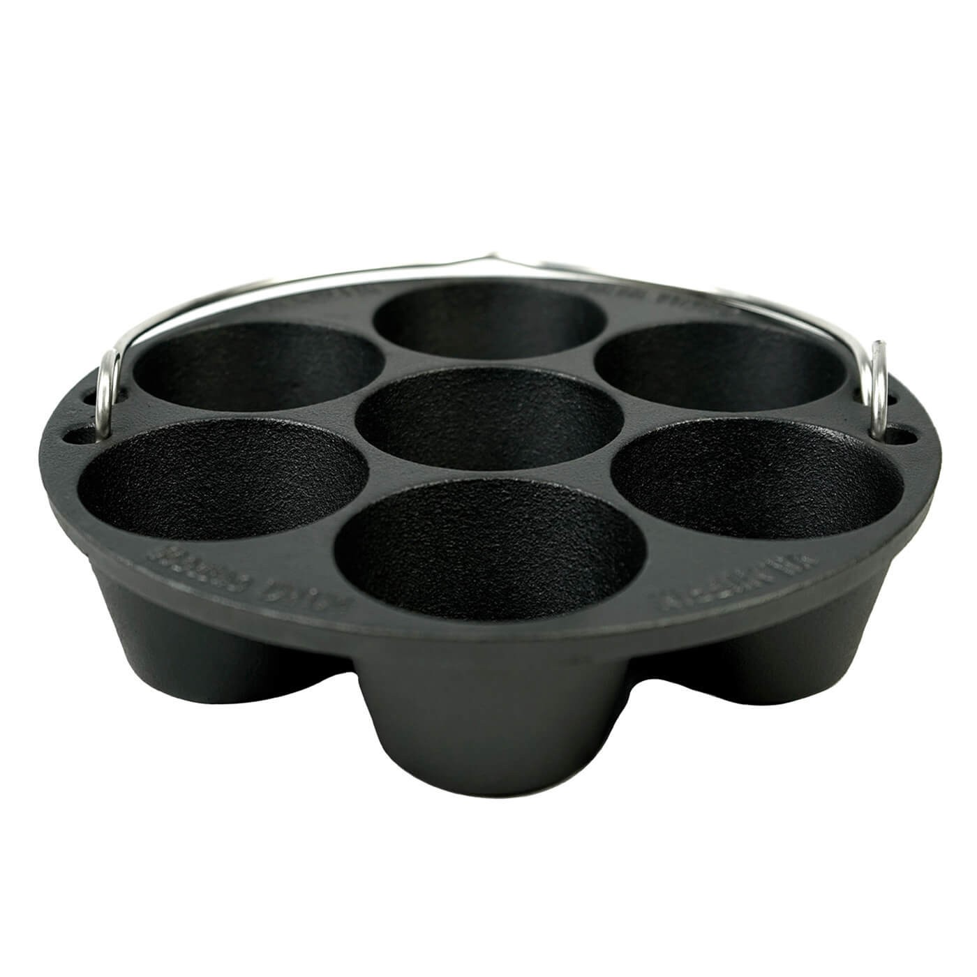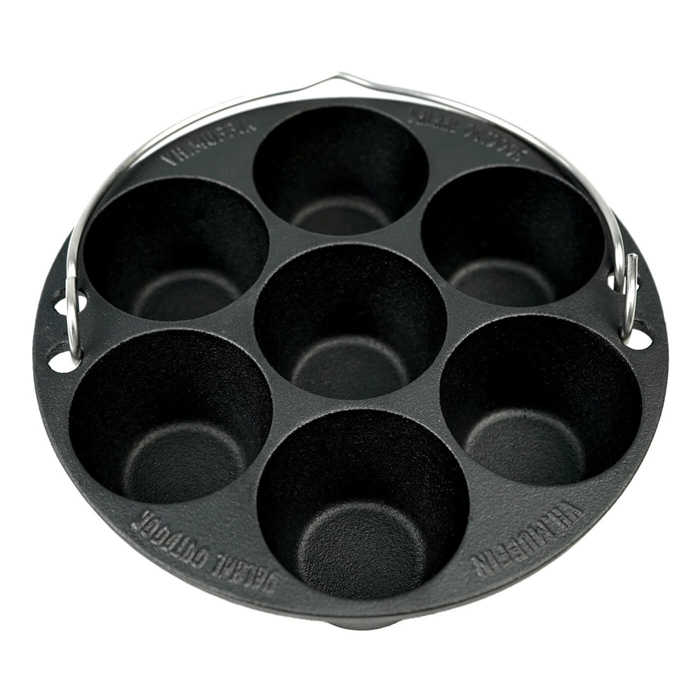 Tigaia brioșe fontă Valhal Outdoor VHMUFFIN este un vas premium pentru coacere uniformă în cuptor, pe foc sau grătar cu 7 compartimente.