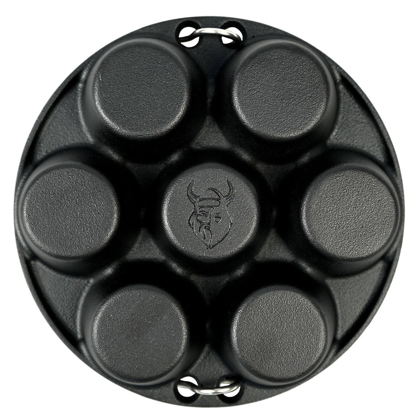 Tigaia pentru brioșe Valhal Outdoor VHMUFFIN este un vas de copt premium, fabricat integral din fontă groasă și rezistentă.