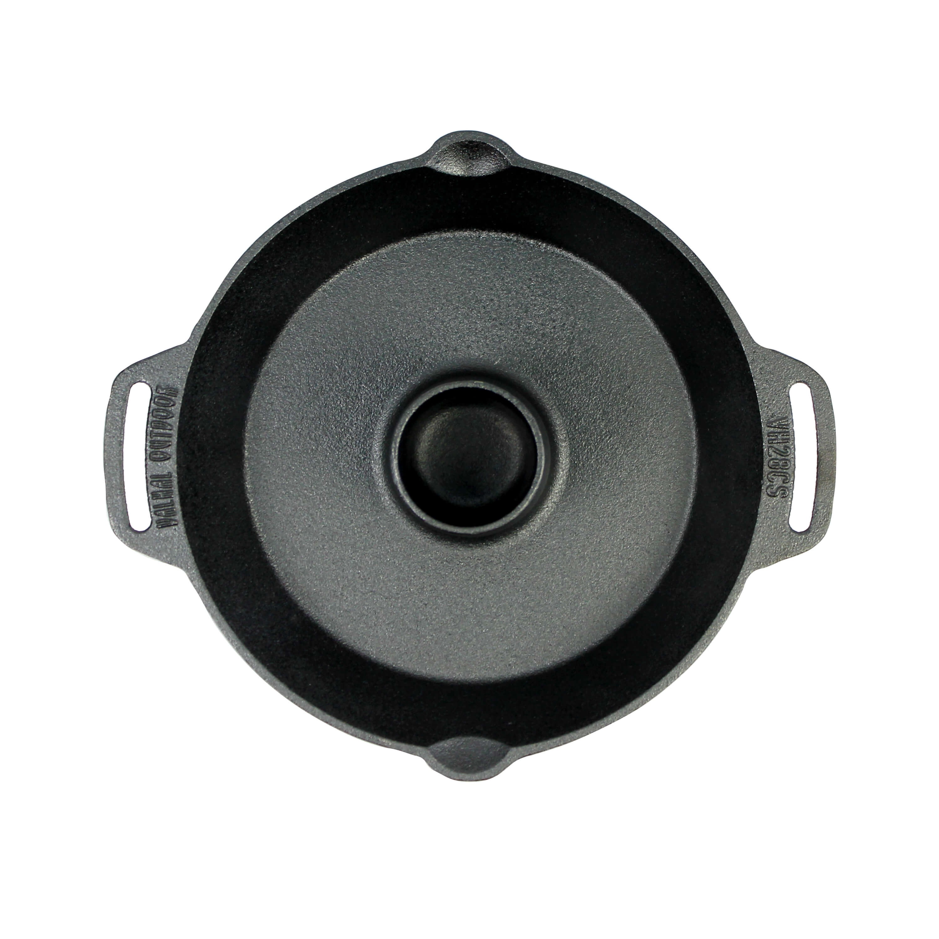 Vasul fontă Valhal Outdoor VH28CS, cu diametru de 28 cm și suport central pentru pui, este ideal pentru gătire uniformă și fripturi suculente.