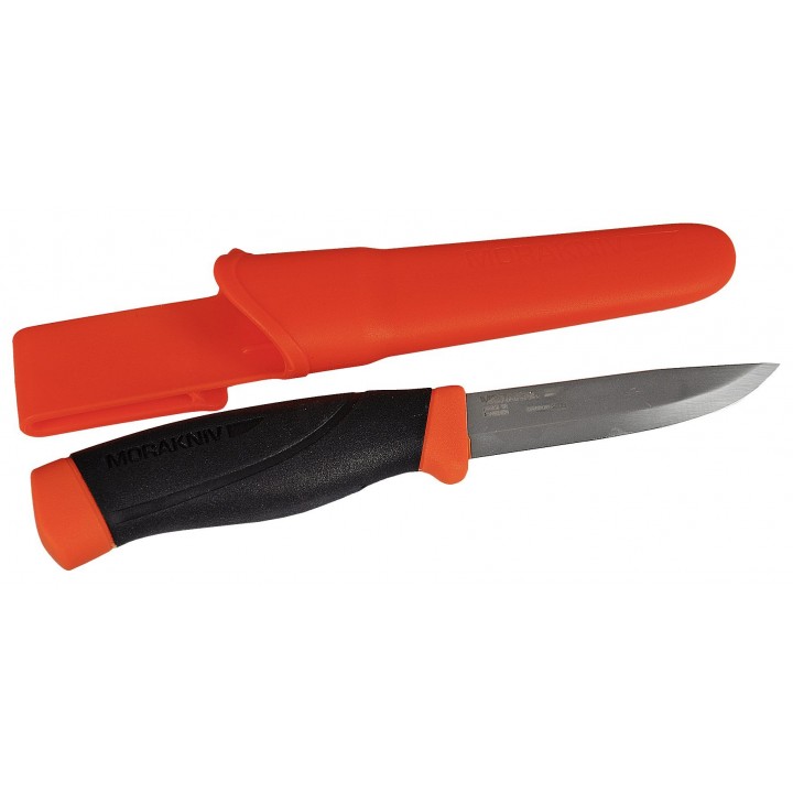 Cutit de lucru robust, din otel suedez de inalta calitate, cu o grosime a lamei de 3,2 mm in loc de 2,0 mm (versiunea clasica Companion F). Manerul ergonomic din cauciuc se potriveste perfect in mana si asigura o utilizare optima. Teaca si elementul de parare sunt de culoare portocaliu intens. Teaca poate fi atasata la cureaua pantalonilor.