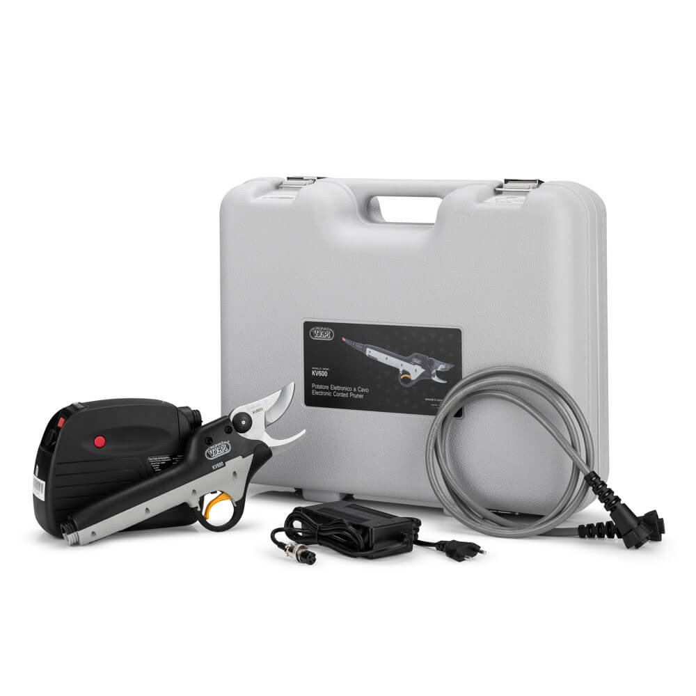 Volpi KV600 este o foarfecă electrică cu acumulatori, concepută pentru utilizare profesională în livezi și vii, oferind un echilibru excelent între putere, greutate și confort în lucru.