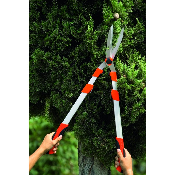 Foarfeca hobby cu manere telescopice, ideala pentru tunderea gardului viu. Manerele ergonomice din aluminiu, nu permit alunecarea mainilor in timpul taierii.