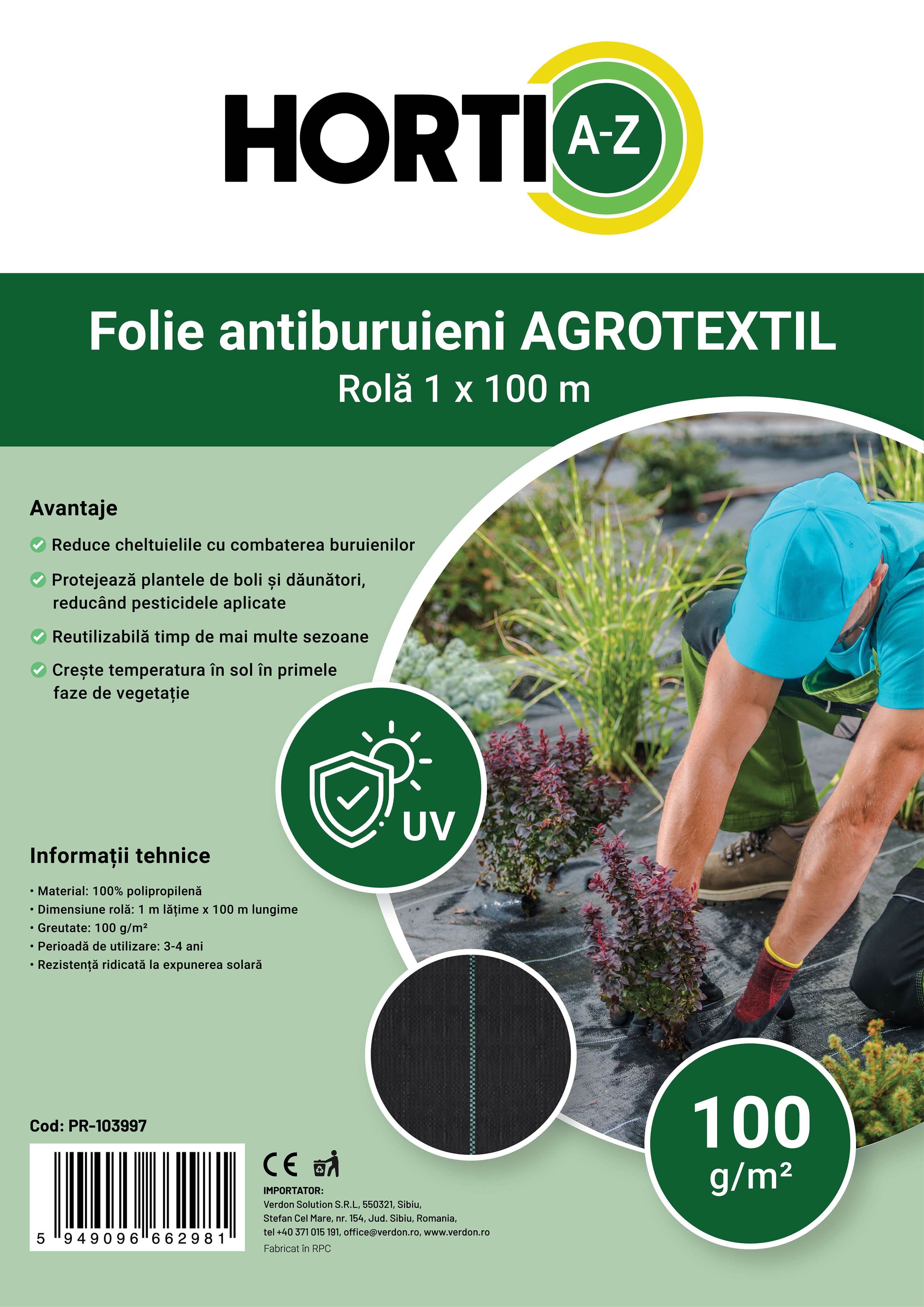 • Dimensiunie rolă: 1 m lățime x 100 m lungime