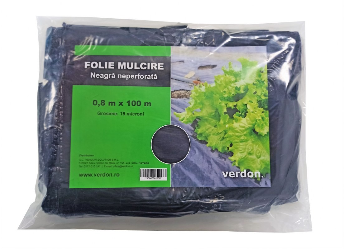 Folie MULCIRE Neagra Neperforata, Grosime 15 microni, 1 Sezon - Pachet 0,8 x 100 m