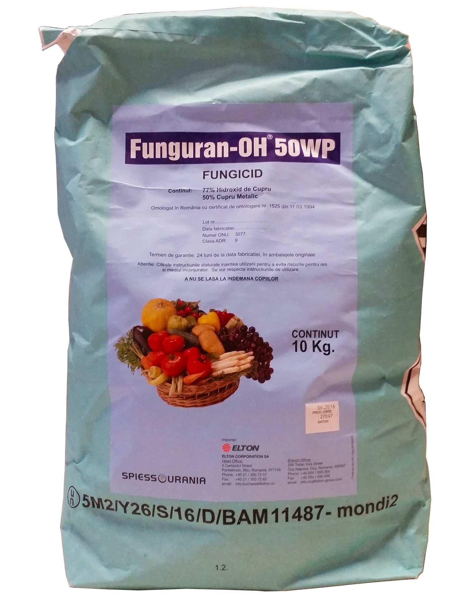 Funguran OH 50 WP este un fungicid de contact pe baza de cupru cu o capacitate de penetrare in plante si de protejare foarte buna. Aceste caracteristici confera produsului capacitatea de a combate ciupercile patogene, in special din grupa Phycomycete (care produc mana), dar si focul bacterian al rozaceelor.