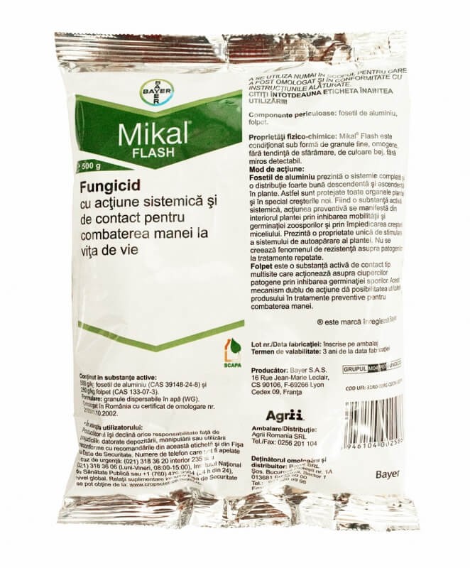 Prin acest mecanism complex de acţiune, Mikal Flash asigură protecţia faţă de mană în momentele de sensibilitate maximă ale viţei de vie.