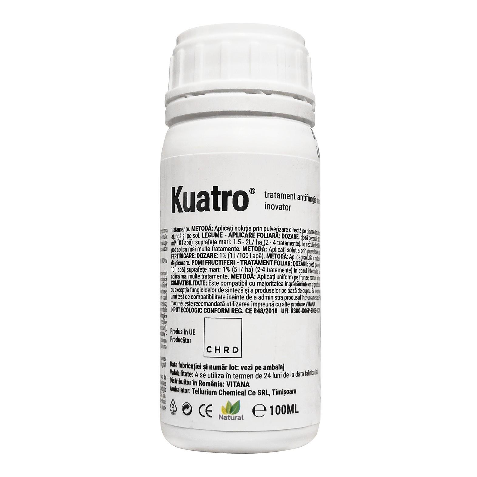 Tratament antifungic KUATRO®, Ecologic, Vitana - 100 ml, Legume, Pomi fructiferi, Mana, Fainare, Putregai, Alternarioza