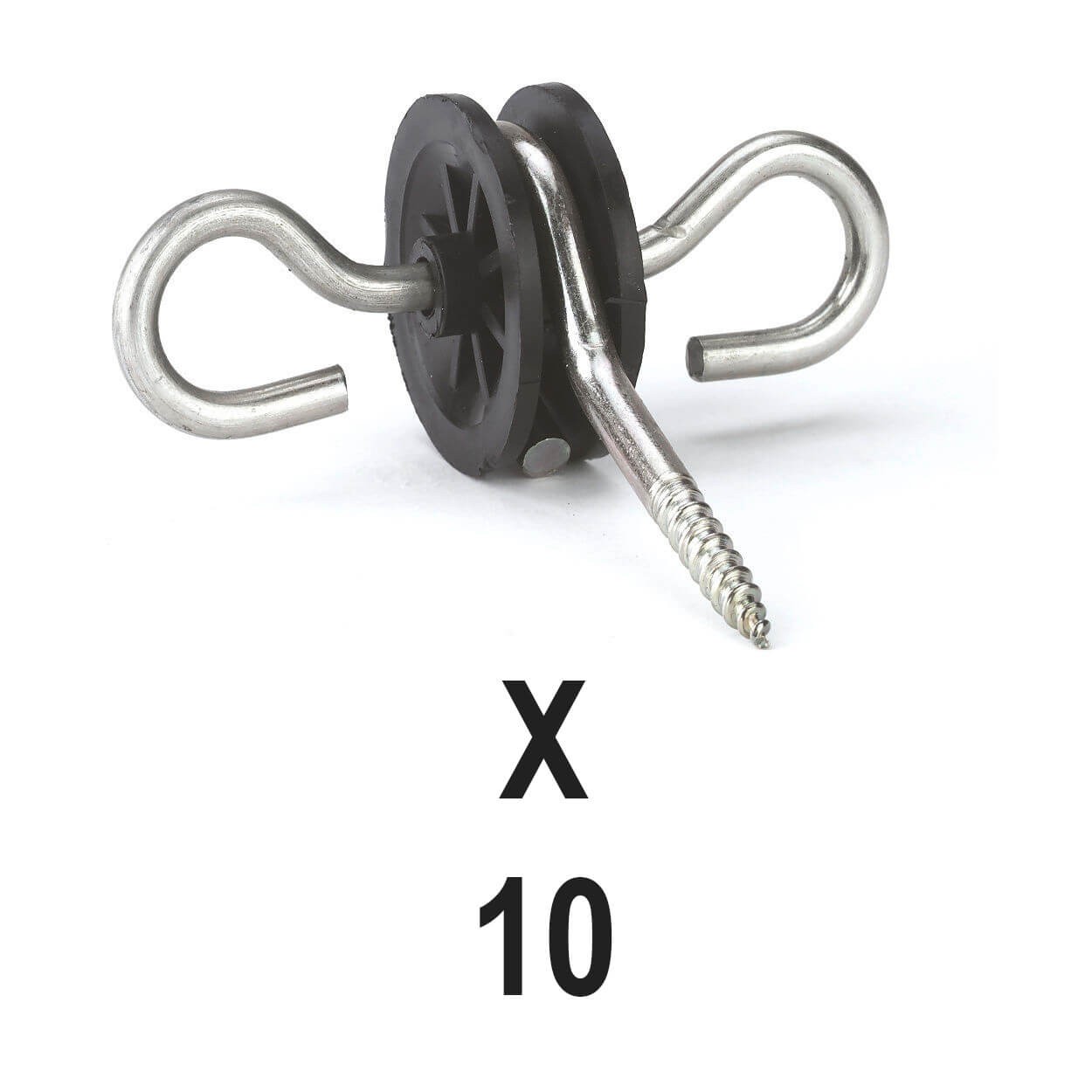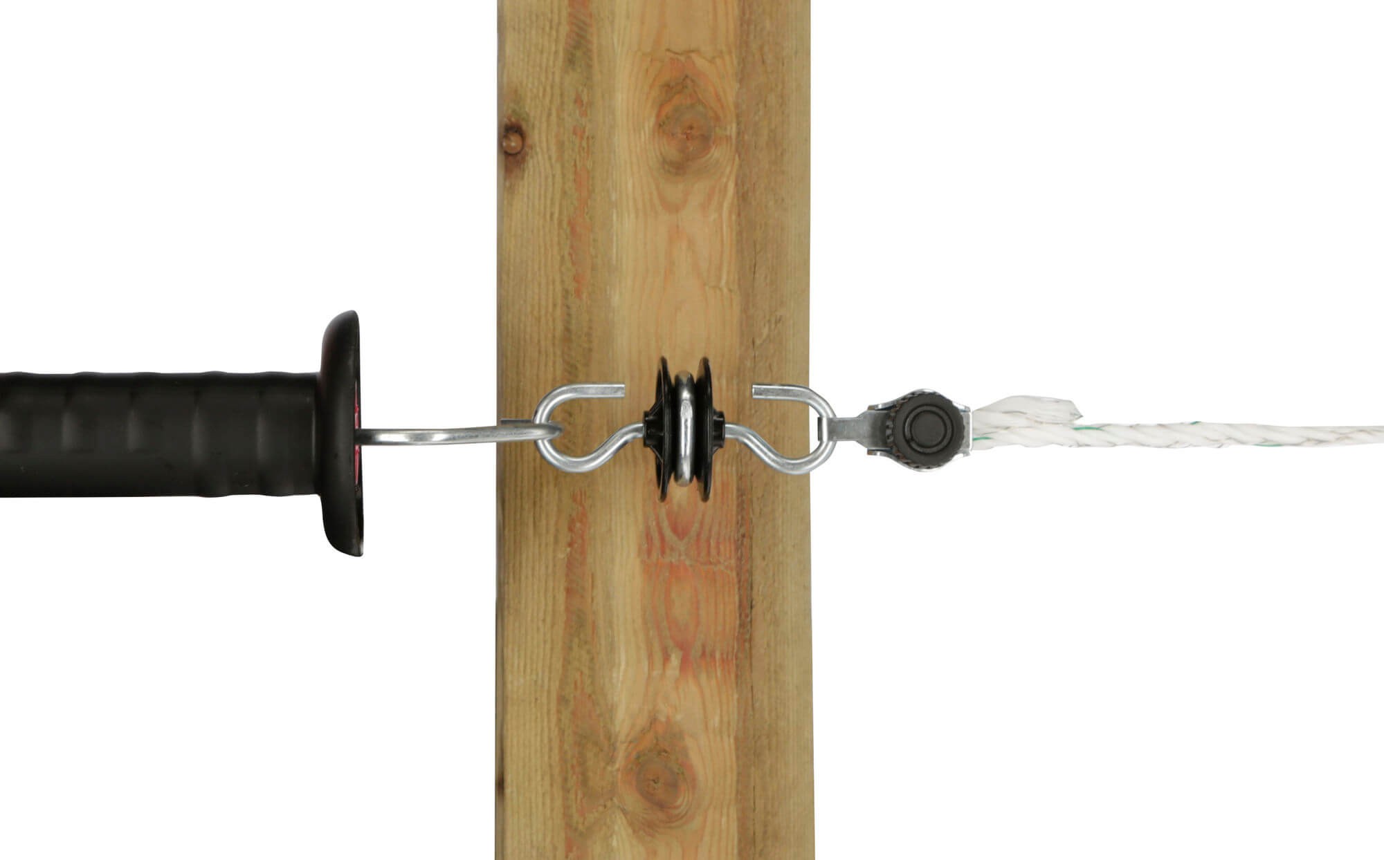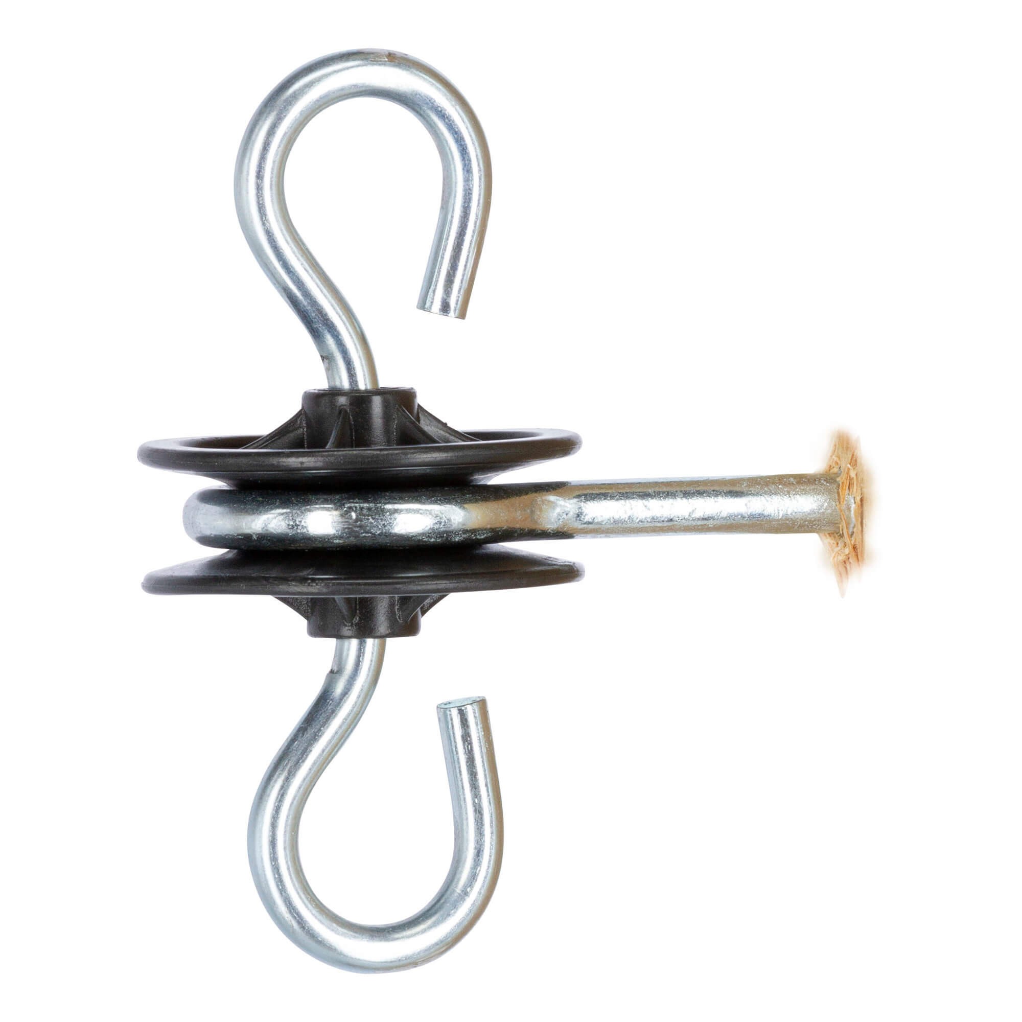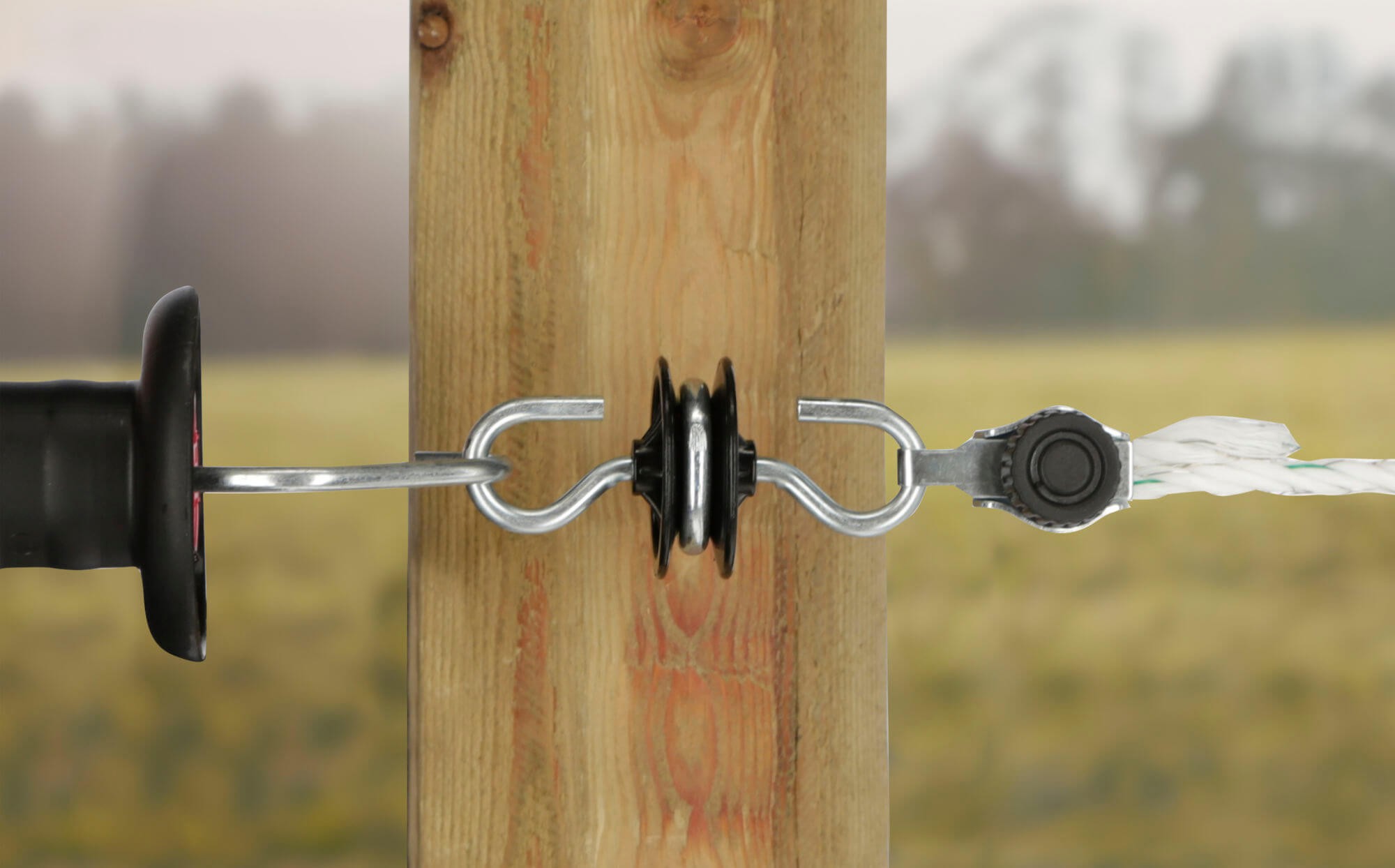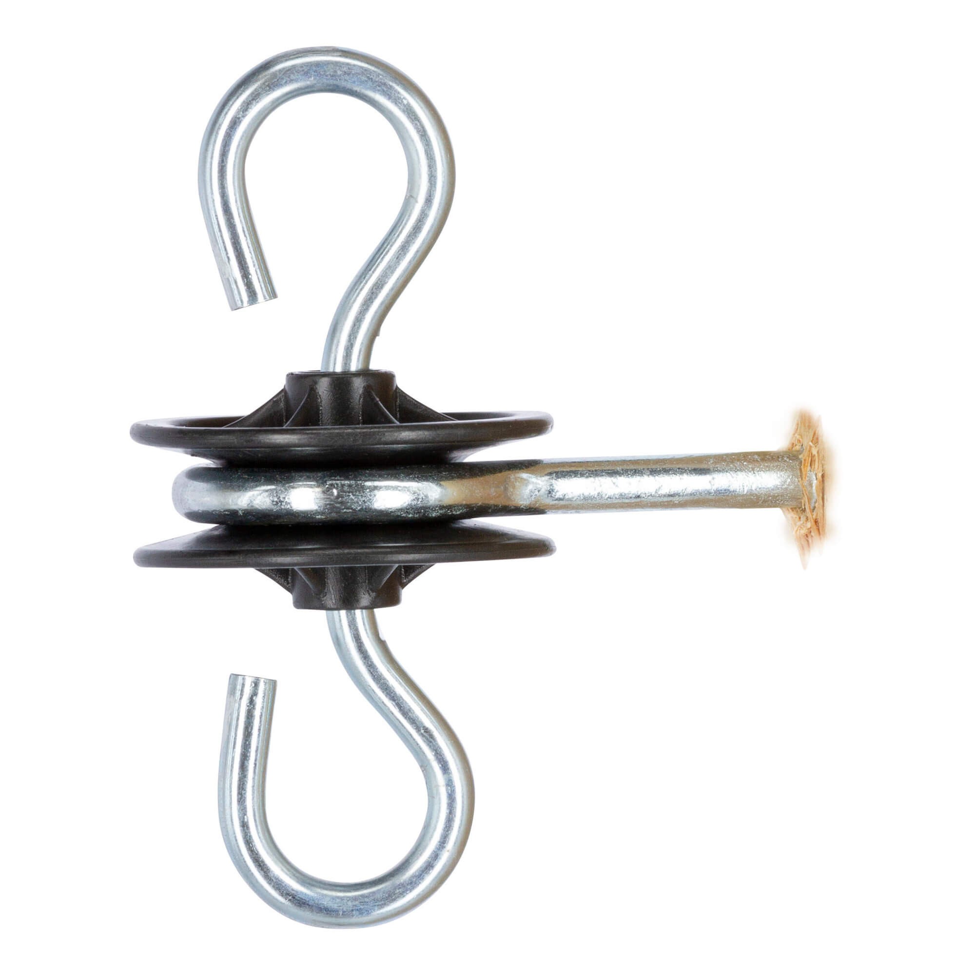 Izolatorul Kerbl, echipat cu 2 cârlige pentru atașarea mânerelor de ambele părti, buclă rotativă la 360° și filet pentru fixare în lemn. De asemenea, suportul galvanizat oferă un grad ridicat de rezistență la coroziune și durabilitate.