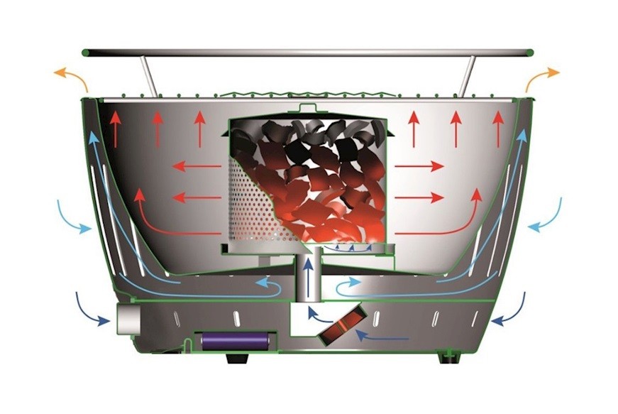 • Capacitatea containerului pentru cărbuni este de 400 g. Timpul de ardere variază între 60-130 de minute în funcție de cărbunii utilizați și intensitatea fluxului de aer folosit pentru controlul temperaturii. Containerul poate fi însă reumplut oricând cu cărbuni în timpul gătitului.