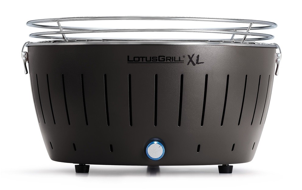 LOTUS GRILL XL G435 Gri Antracit este un grătar pe cărbuni portabil, de capacitate mare, echipat cu tehnologie smokeless pentru reducerea fumului.