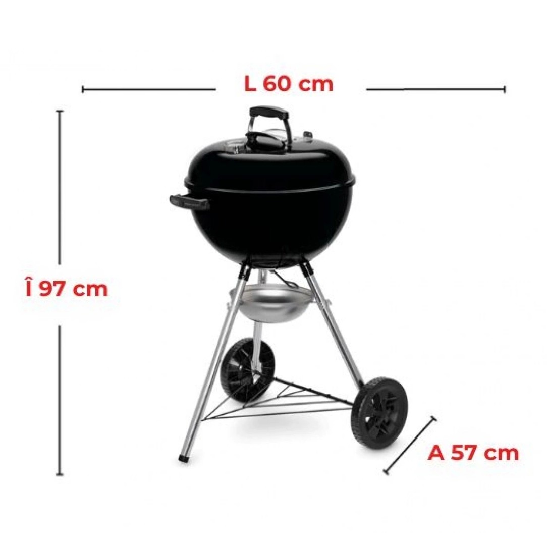 • Componente: Capac și cuvă din oțel, suport pe roți, grilă din bare de oțel pentru cărbuni, grilă pentru gătit.