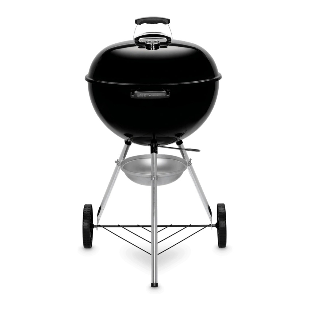 Grătarul pe cărbuni Original Kettle, dispune de mâner lateral și suport tip trepied cu roți care ajută la montarea și manevrarea cât mai ușoară a acestuia. Grătarul vine accesorizat cu colector de cenușă rezistent la ruginire și raft din inox pentru depozitare. Acesta oferă o suprafață generoasă de gătit, sistem de tiraj situat în partea inferioară și în capac și termometru integrat pentru control optim al temperaturii, fiind astfel posibilă pregătirea unei varietăți mari de preparate.