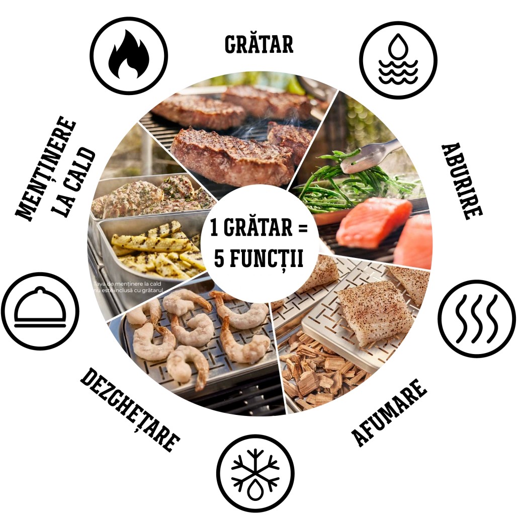 • Componente: Termomentru încorporat, 2 tăvi, cablu alimentare 1.8 m, capac cu mâner