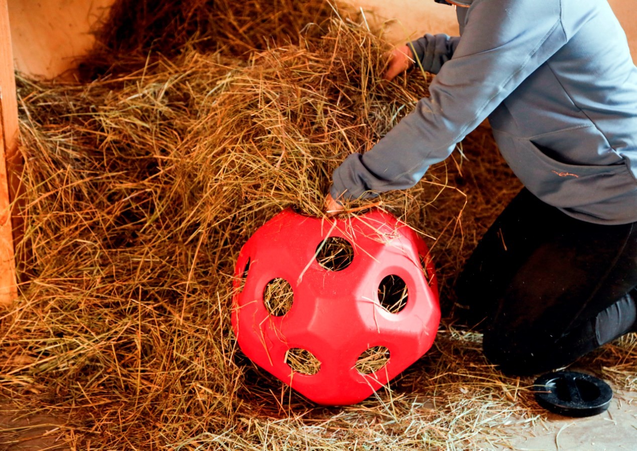 Minge în formă de bilă pentru hrănire Kerbl, roșu - viței și vaci tinere