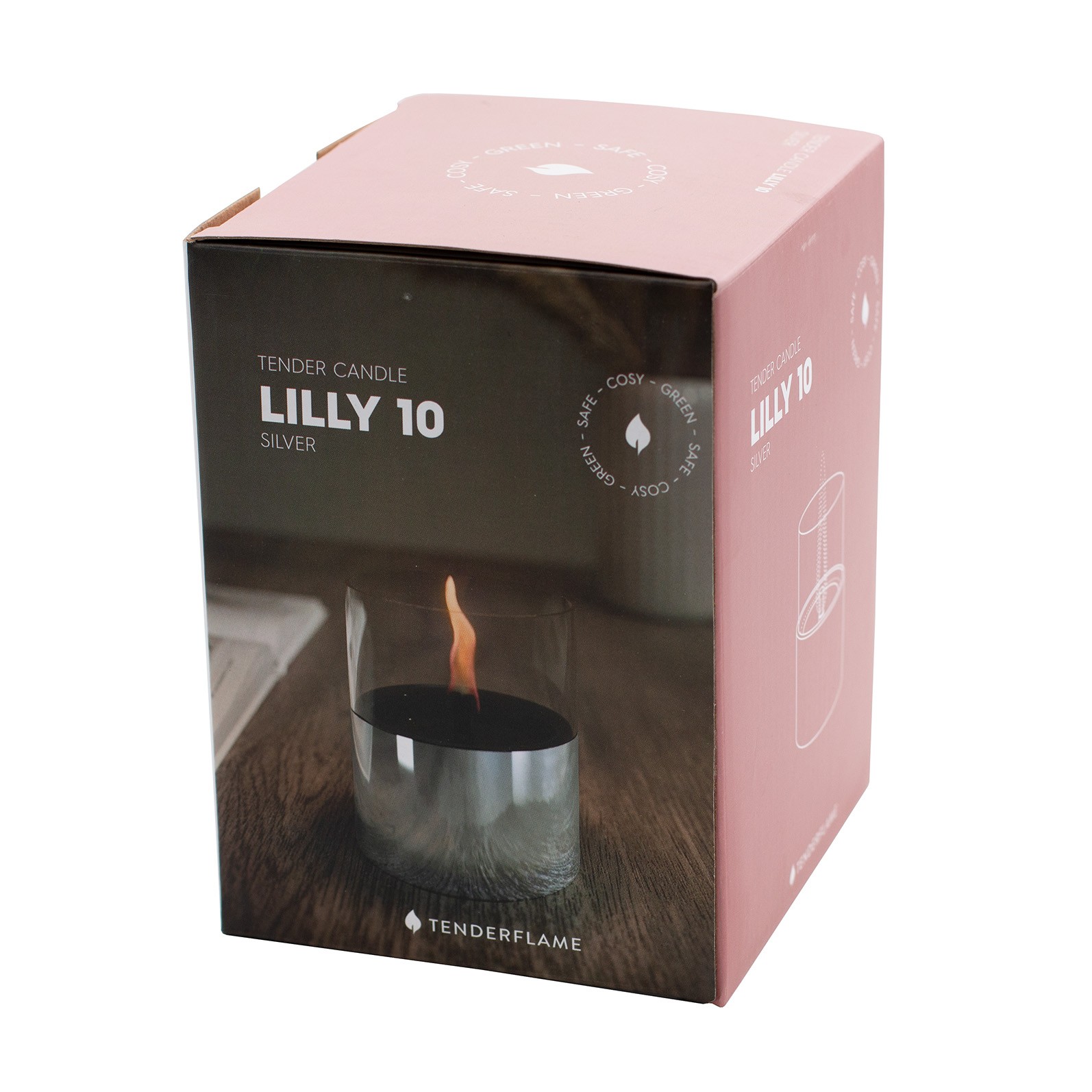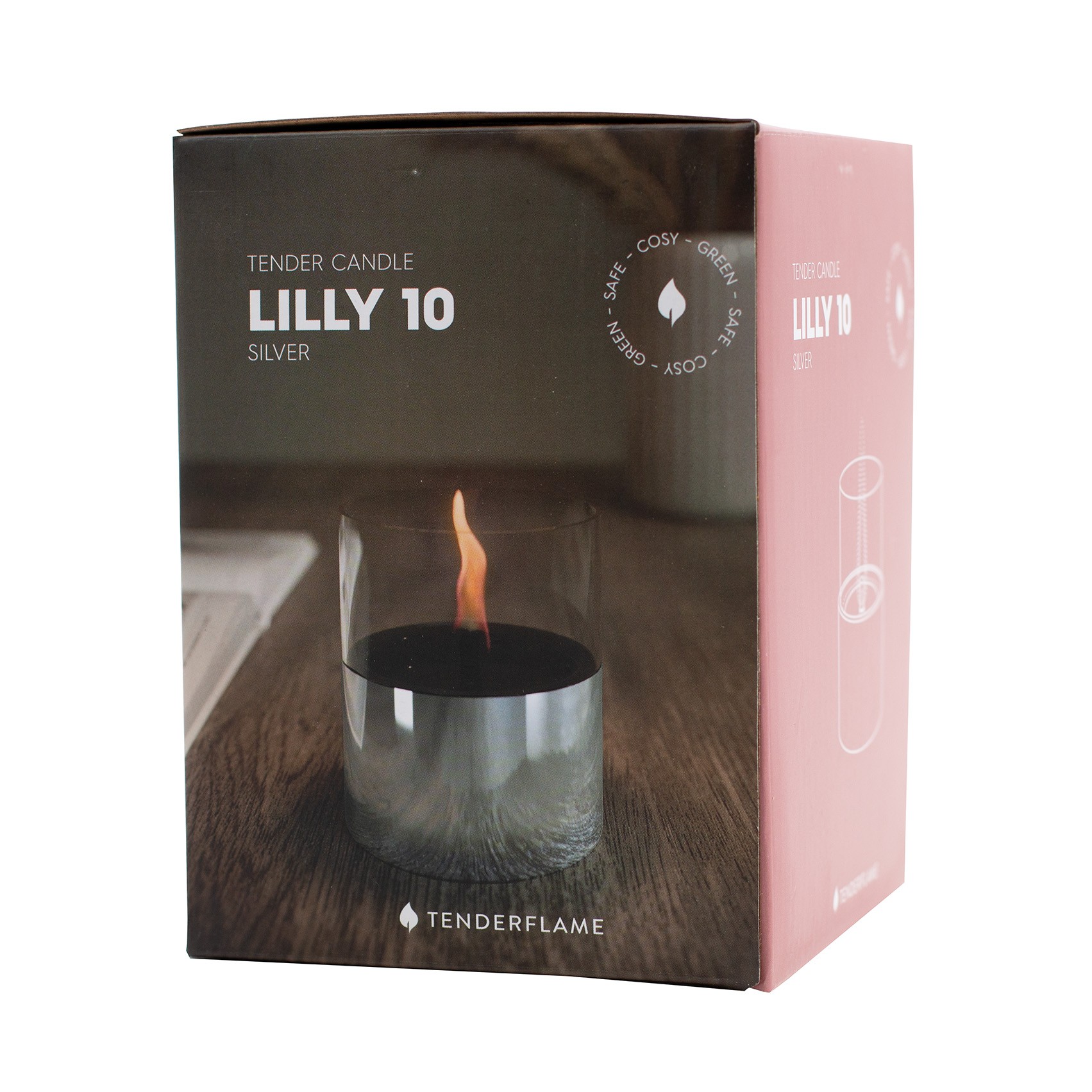 Lumânarea ambientală TenderFlame Lilly 10 Silver Glass ce asigură o flacără constantă și curată, oferind o ambianță deopotrivă liniștitoare și sigură datorită combustibilului Tenderfuel nepoluant ce funcționează doar în combinație cu fitilul din oțel inoxidabil.