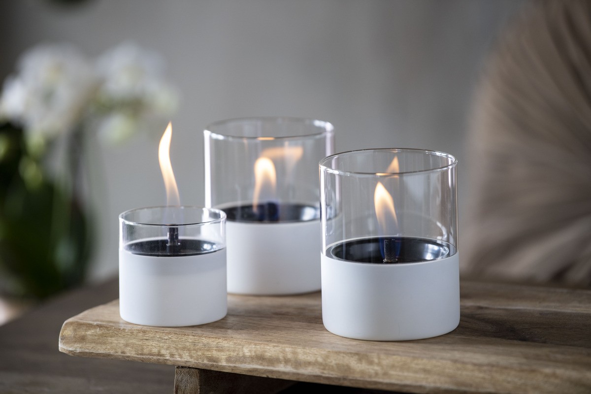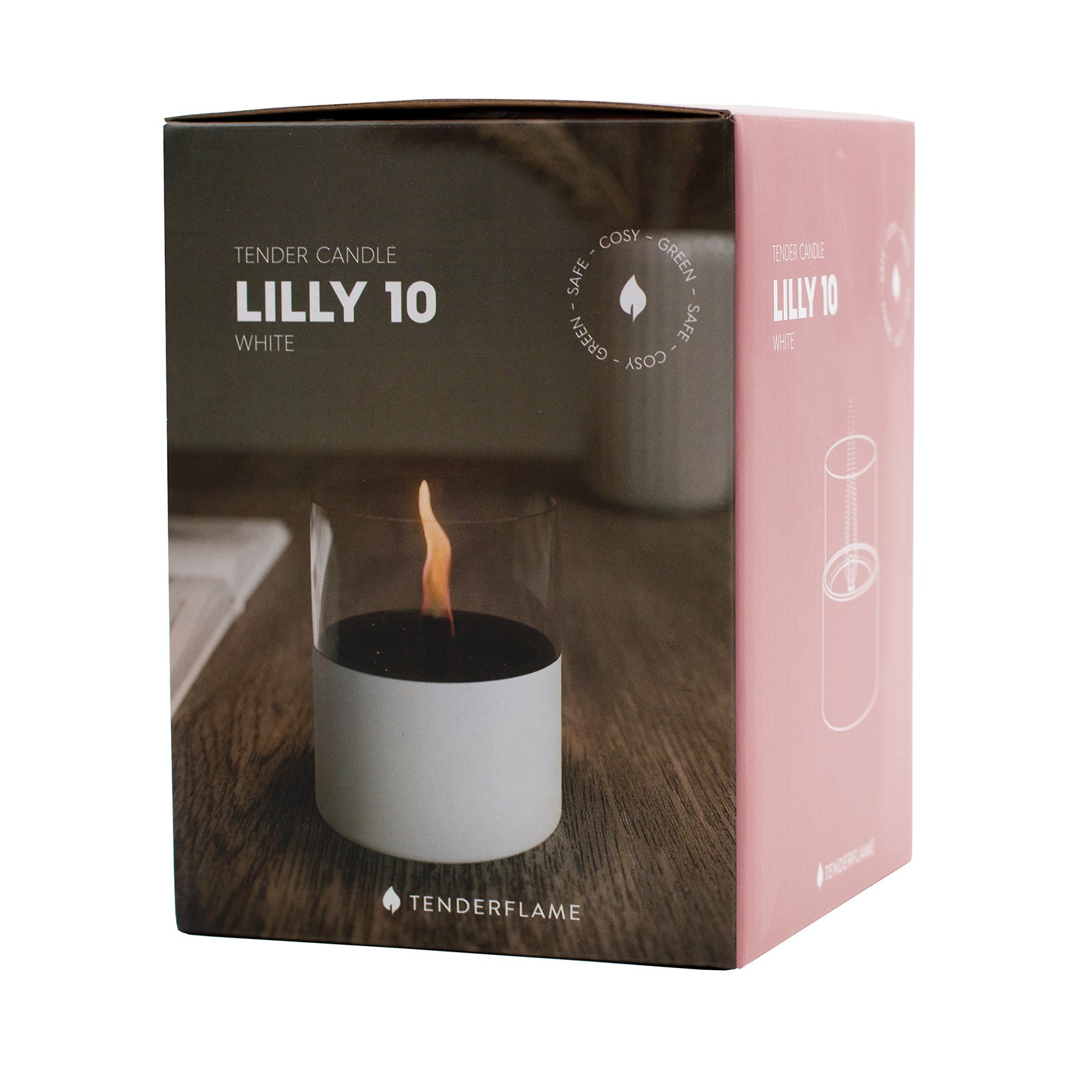 Lumânarea ambientală TenderFlame Lilly 10 White Glass ce asigură o flacără constantă și curată, oferind o ambianță deopotrivă liniștitoare și sigură datorită combustibilului Tenderfuel nepoluant ce funcționează doar în combinație cu fitilul din oțel inoxidabil.