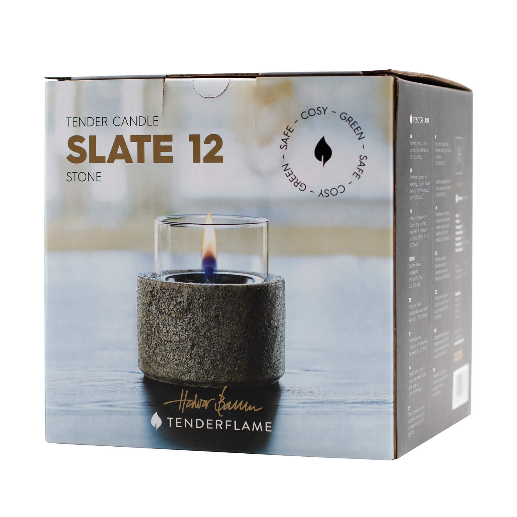Lumânarea ambientală TenderFlame SLATE 12, ideală pentru adăugarea unei note de utilitate si rafinament în ambianța locuinței dumneavoastră.