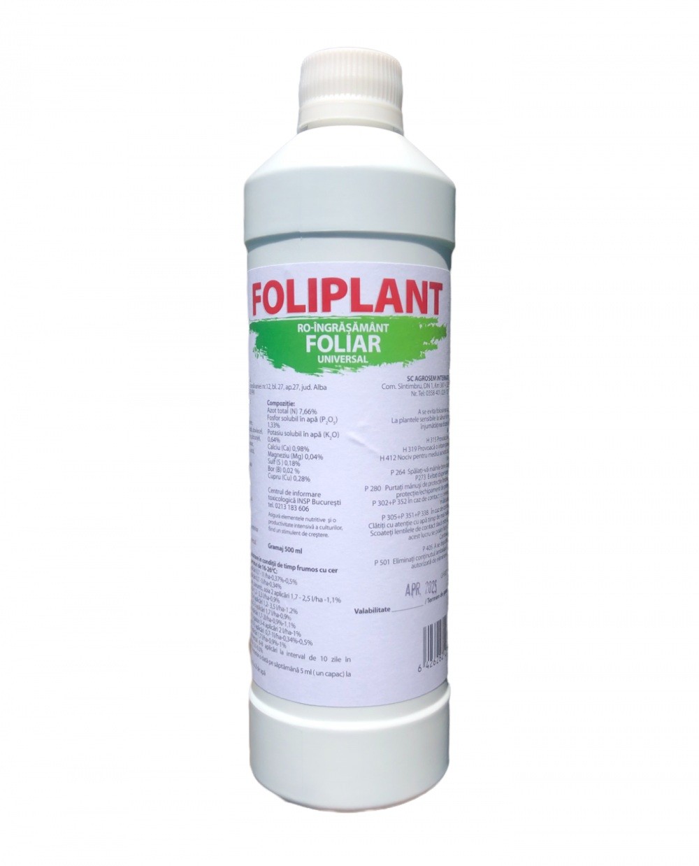Îngrășământ universal Foliplant, produs românesc cu un spectru larg de utilizare: legume, arbuști, flori, pomi, cereale, viță de vie etc. Îngrășământ cu efecte benefice pe tot parcursul vegetației. Conține elemente nutritive (azot, fosfor, potasiu, sulf, bor, calciu, cupru etc.) indispensabile pentru dezvoltarea optimă a plantelor.
