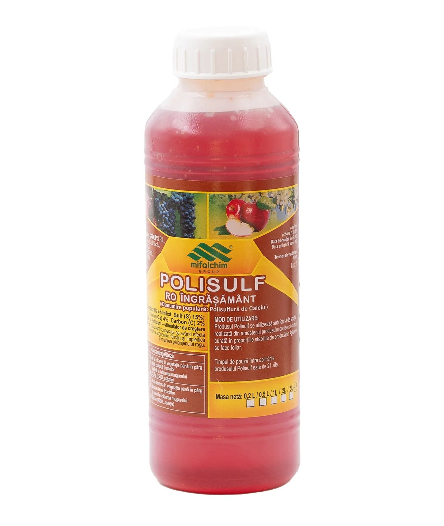 POLISULF este un îngrășământ agrochimic pe bază de polisulfură de calciu, cu caracter de insecto-fungicid și acaricid, recomandat pentru viță de vie, pomicultură și legumicultură.