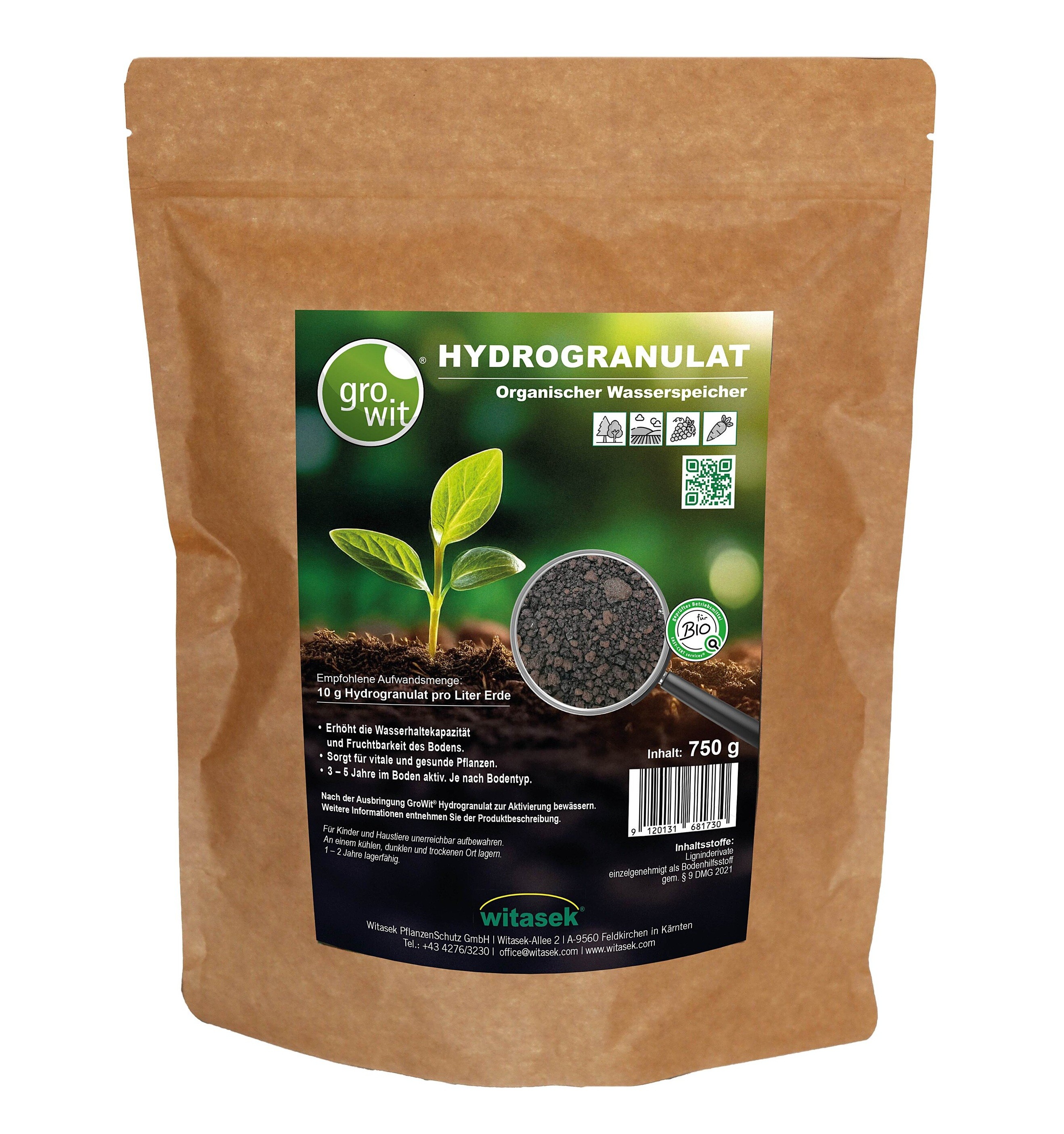 Hidrogranulatul GROWIT® este un hidrogel 100% biodegradabil pe bază de lemn (derivați de ligniți), aprobat conform § 9 DMG 2021 ca adjuvant pentru sol, care absoarbe eficient apa și o eliberează treptat în funcție de nevoile plantei. Acest proces protejează culturile împotriva secetei și stresului hidric, menținându-le sănătoase și viguroase chiar și în condiții dificile.