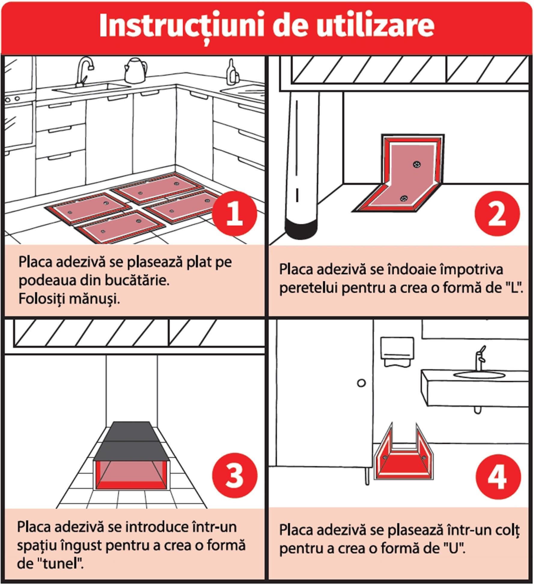 3. Se pot plasa mai multe plăci simultan în zonele cu un număr mare de şoareci, şobolani. Dacă nu se înregistrează capturi într-o săptămână, locul de amplasare poate fi schimbat.