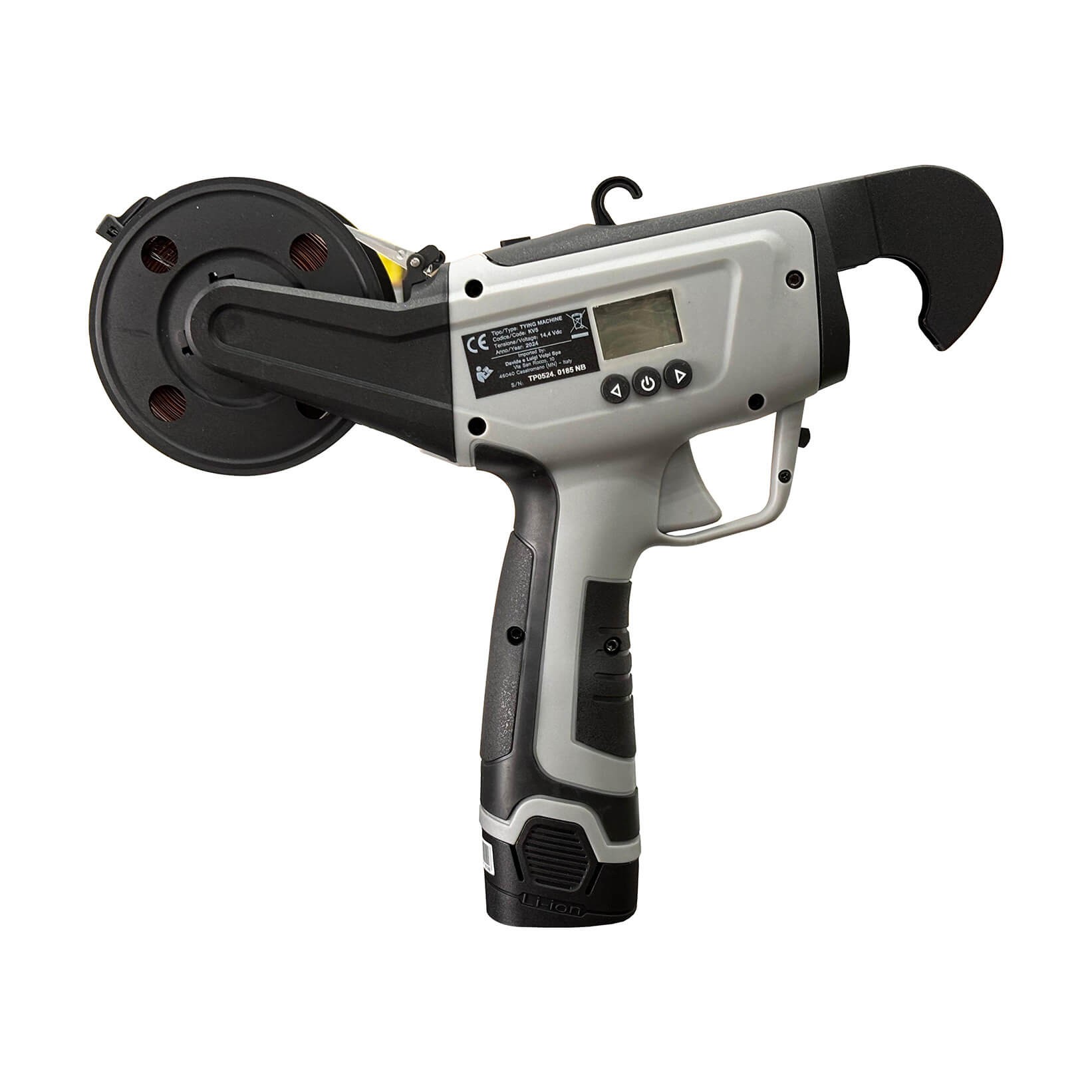 De asemenea, este dotat cu un afișaj practic care indică nivelul bateriei și numărul de legări. Capacul superior are o încuietoare dublă pentru a preveni eliberarea accidentală. Cu ajutorul butoanelor, numărul de rotații ale roții de legare poate fi reglat în cinci poziții diferite, începând de la 2 până la 6 rotații, în funcție de diametrul lăstarului. Tot prin intermediul butoanelor funcționale, viteza de rotație a roții de legare poate fi reglată pe două poziții: "0" și "1".