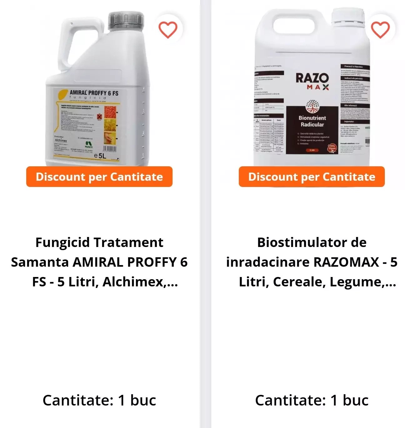 ✔️ Pachet avantajos comercial – Cantitatea de produse nu acoperă aceeași suprafață de semințe (10 tone cu Amiral Proffy vs. 1,7 tone cu Razomax), însă pachetul este gândit ca ofertă promoțională, cu un preț mai bun decât achiziția separată. Pentru a trata uniform aceeași cantitate de sămânță, produsul Razomax poate fi suplimentat separat.