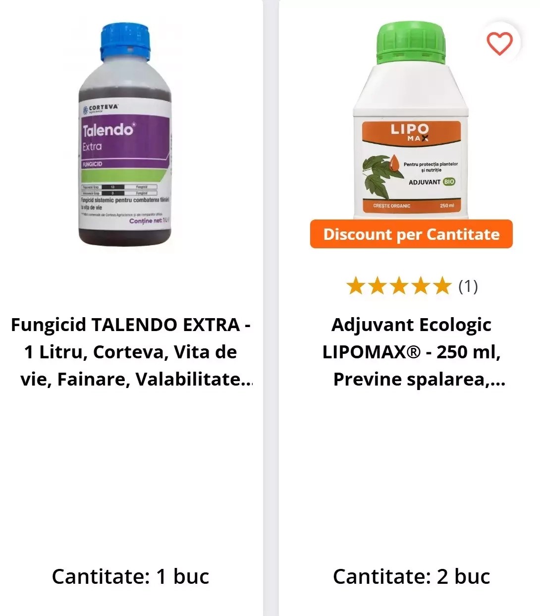 | PR-103827 | Adjuvant Ecologic LIPOMAX® - 250 ml, Previne spalarea, Prelungeste actiunea erbicidelor, insecticidelor si fungicidelor | 94.00 Lei | 2 buc |
