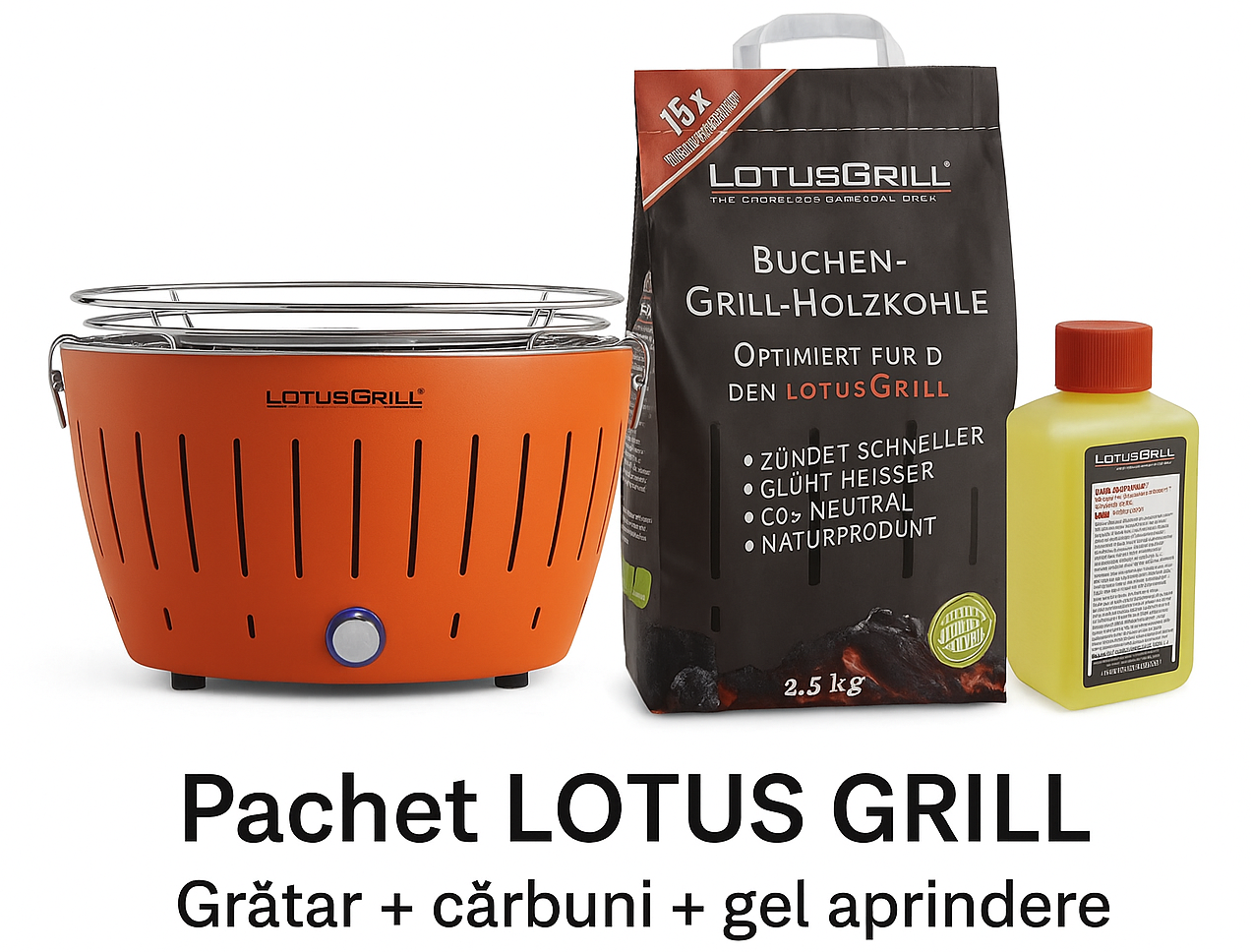 Pachet SMART-MIX 188 - LOTUS GRILL CLASSIC PORTOCALIU + Sac carbuni + Gel aprindere
