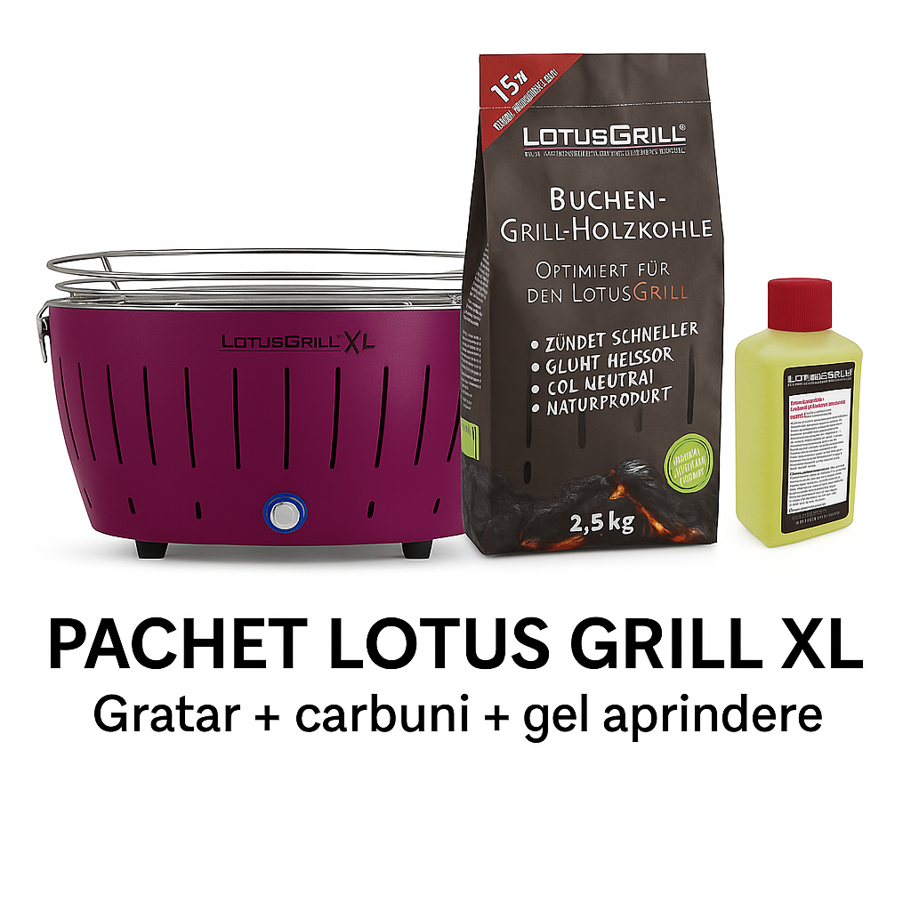 Pachet SMART-MIX 198 - LOTUS GRILL XL VIOLET + Sac carbuni + Gel aprindere