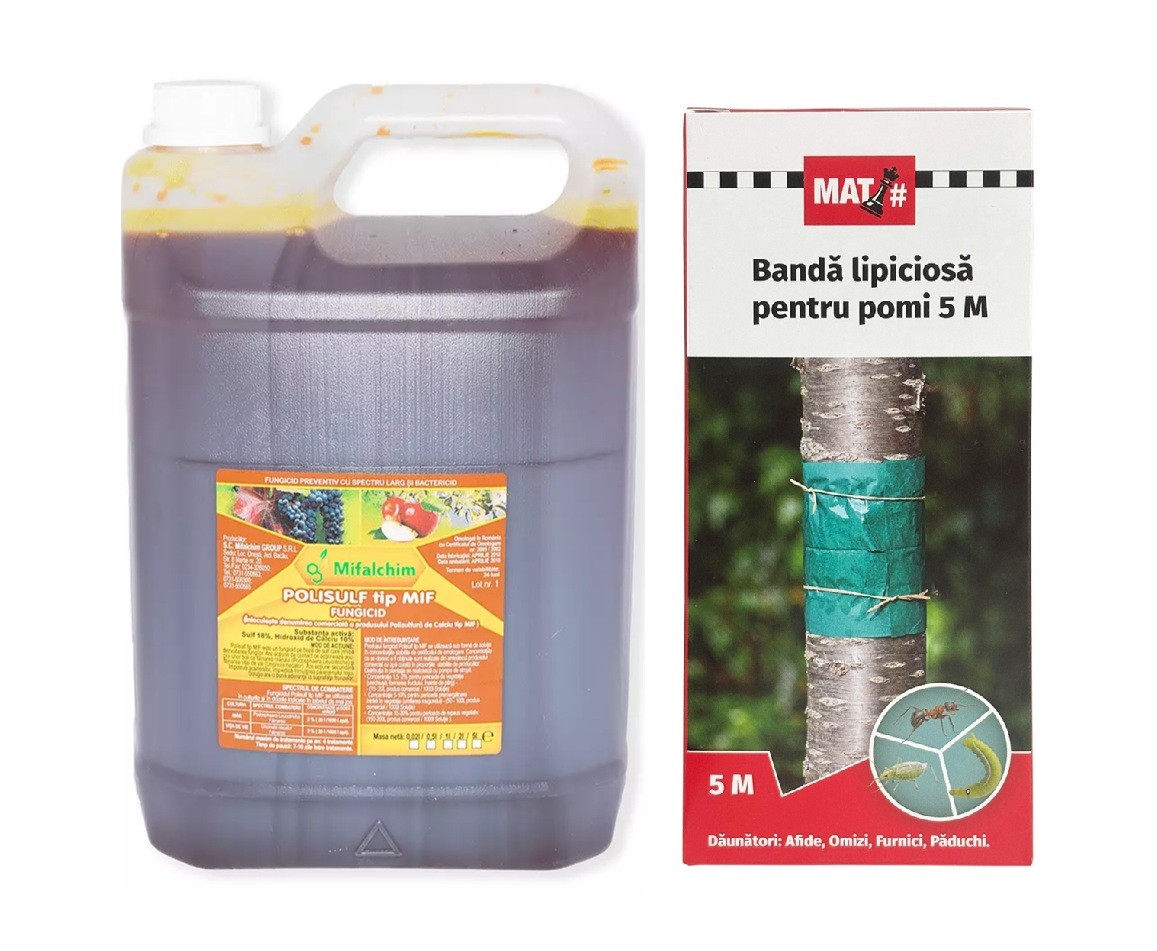 Pachet SMART-MIX 237 - POLISULF 5 L, Polisulfura de Calciu + Banda lipicioasa pentru pomi MAT 14 cm x 5 m