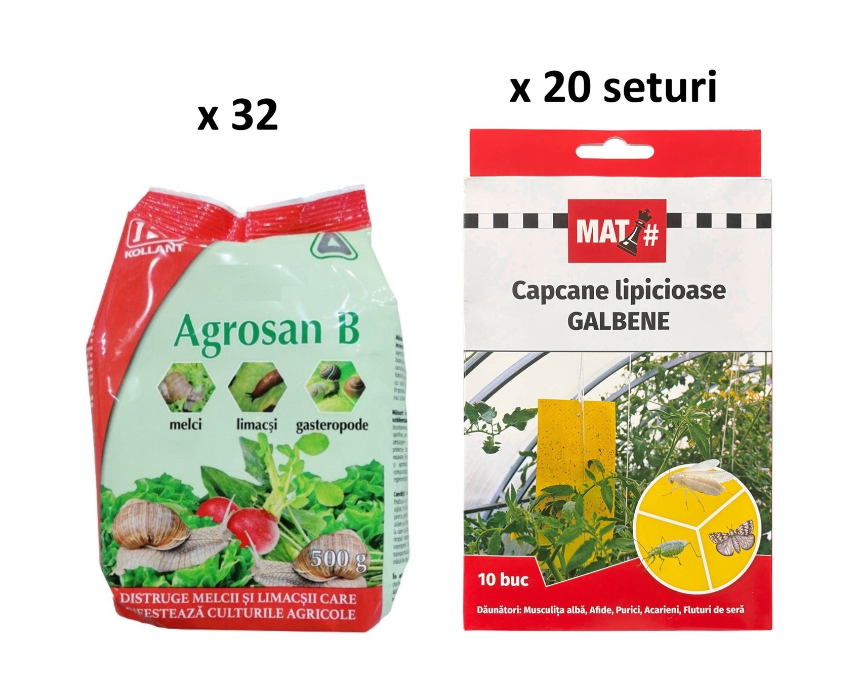 Pachet SMART-MIX 258 - Moluscocid AGROSAN B 500 g (x 32 buc) + Capcane lipicioase galbene MAT (x 20 seturi)