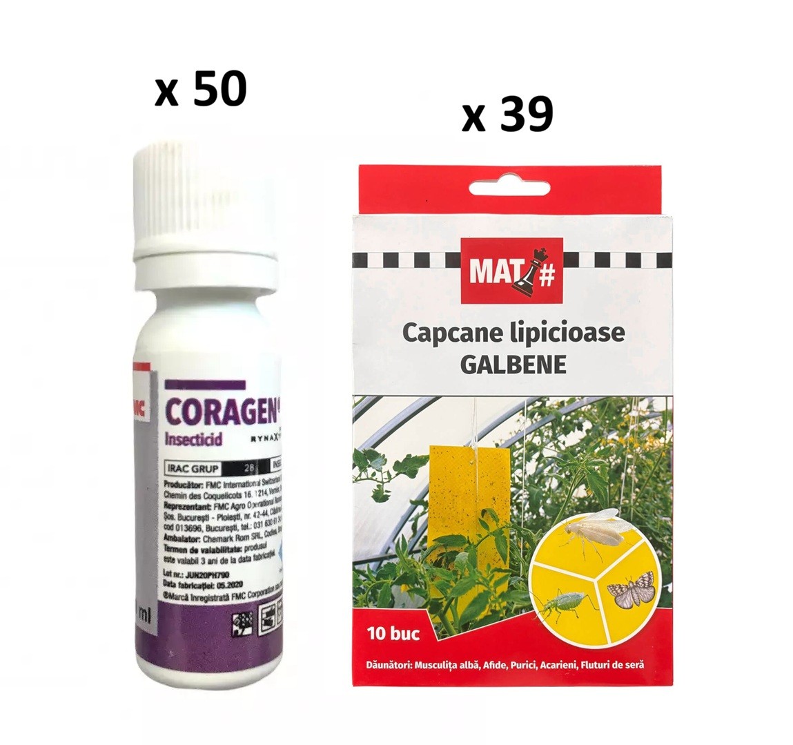 Pachet SMART-MIX 267 - Insecticid CORAGEN, FMC 10 ml (x 50 buc) + Capcane lipicioase galbene MAT Set 10 (x 39 buc)