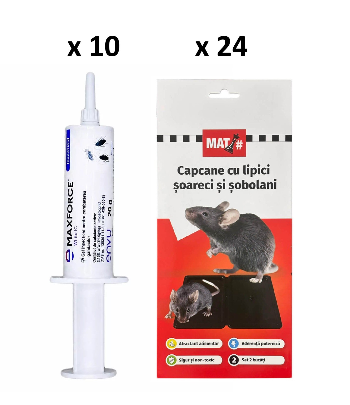 Pachet SMART-MIX 277 - Insecticid Gel MAX FORCE IC 20 g (x 10 buc) + Set 2 Capcane cu lipici soareci si sobolani MAT (x 24 buc)