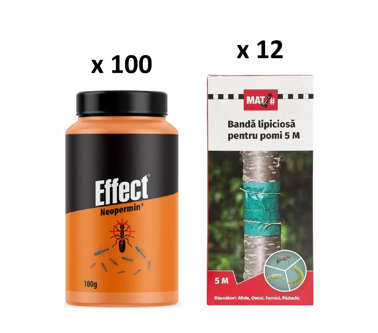 Pachet SMART-MIX 278 – Praf furnici NEOPERMIN, Effect 100 g (x 100 buc) + Bandă lipicioasă pomi MAT (x 12 buc)