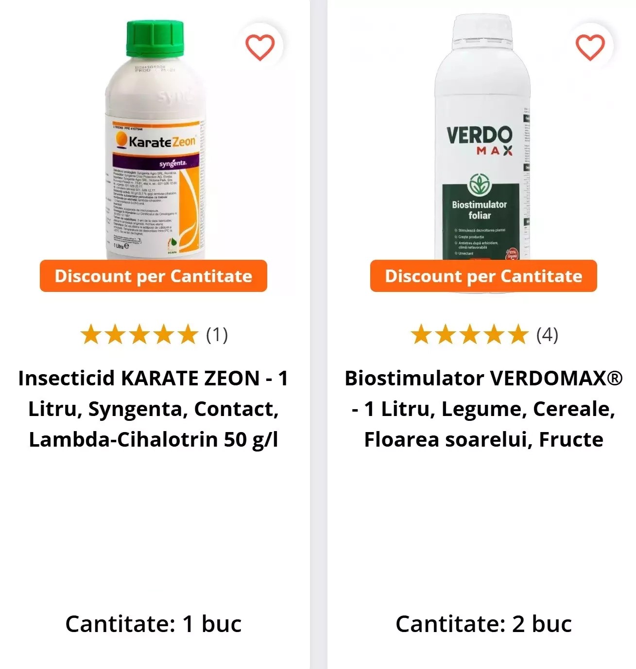 Insecticidul KARATE ZEON oferă o protecție excepțională împotriva celor mai frecvenți dăunători, fiind ideal pentru culturile mari cerealiere, legumicultură, pomicultură și viticultură. În același timp, VERDOMAX, un biostimulator universal de ultimă generație, susține dezvoltarea optimă a plantelor, sporind rezistența acestora și îmbunătățind calitatea recoltelor.