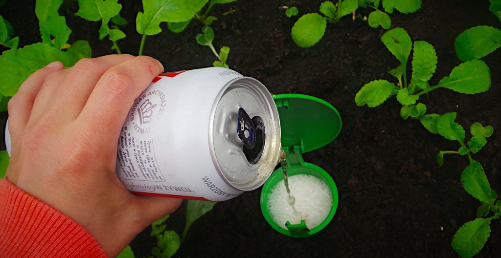 • O gaura in pamant, aseaza capcana, umple cu bere si inchide capacul