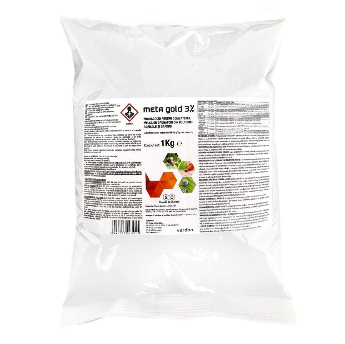 Meta Gold 3% este un moluscocid pe bază de metaldehidă. Combate atât limacșii (Arion sp., Deroceras sp. Limax sp.), cât și melcii cu cochilie (Helix sp., Cepaea sp.). În contact cu produsul melcii secretă în exces mucus, se deshidratează și își pierd locomoția. Melcii nu se mai pot hrani și nici retrage în sol. Moartea lor survine chiar lângă locul unde au intrat în contact cu produsul.