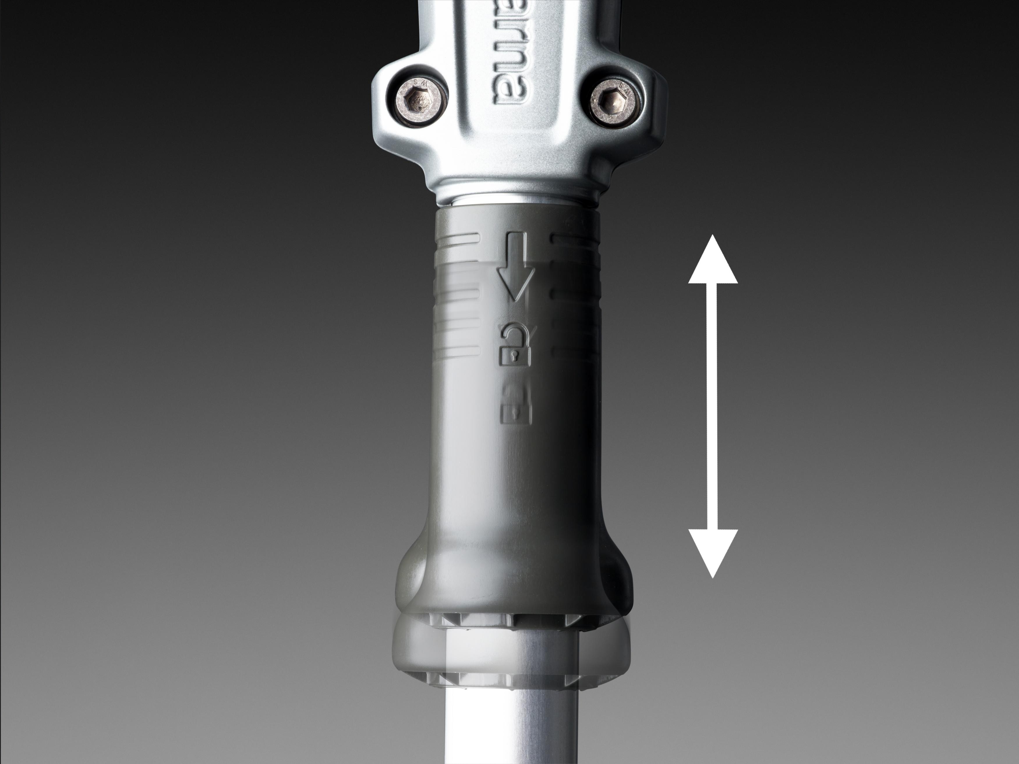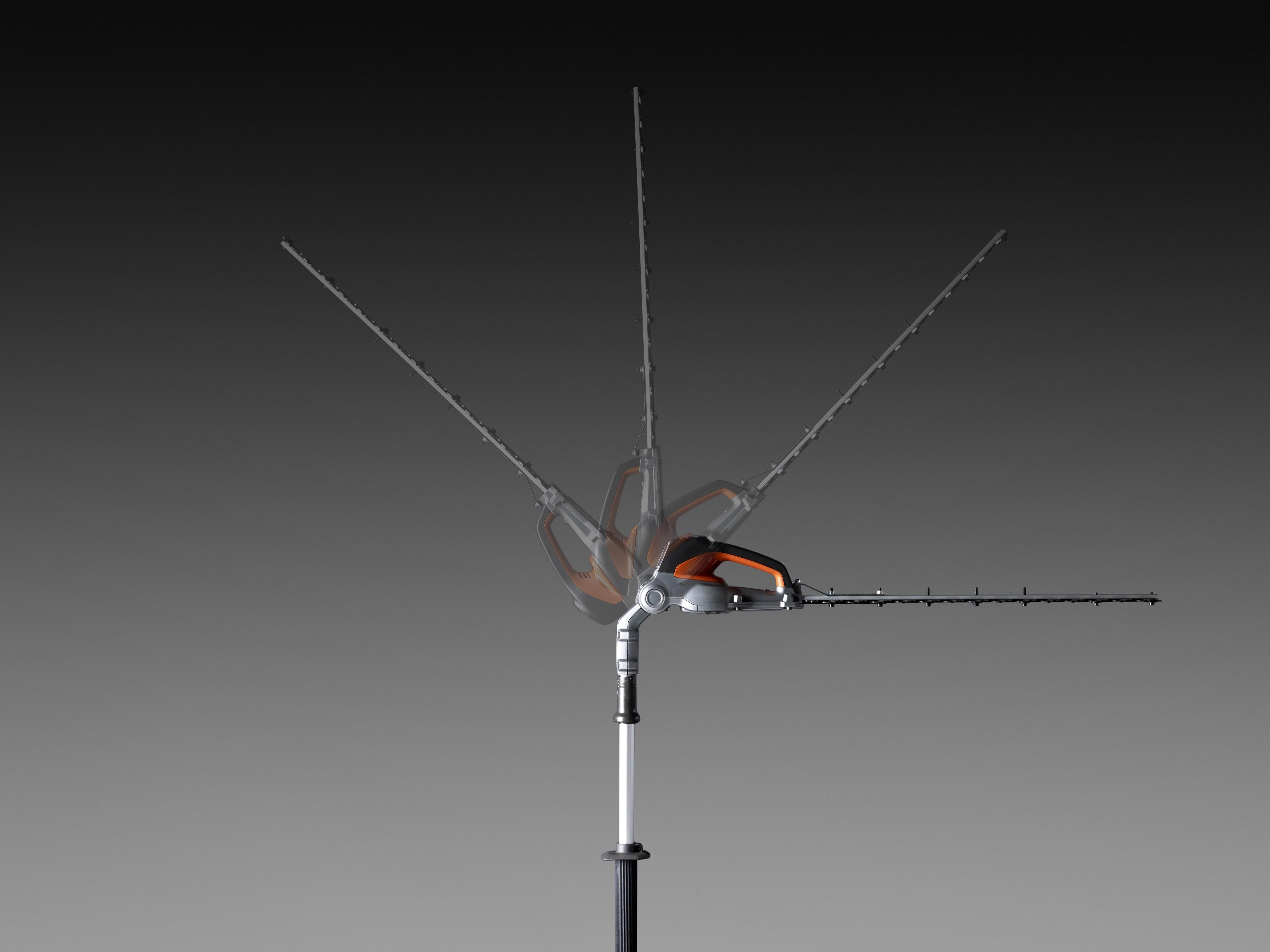 Reglarea unghiului permite poziții de lucru ergonomice la tăierea gardurilor vii înalte și joase.