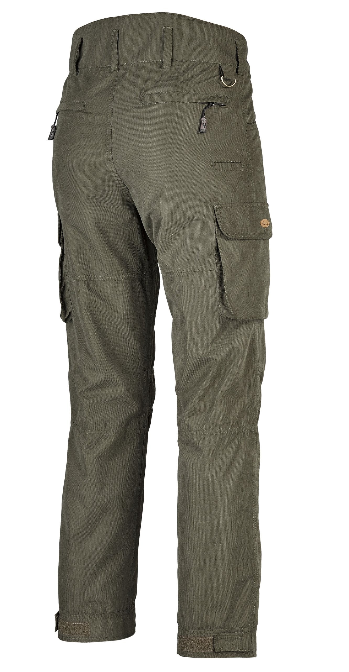 Capetele pantalonilor sunt echipate cu o căptușeală interioară fixă. Acestea pot fi reglate în lățime cu Velcro pentru a ține departe umiditatea și frigul. Două buzunare pe șold cu fermoar, două buzunare laterale, un buzunar pentru cuțit și două buzunare mari completează acești pantaloni de vânătoare versatili.