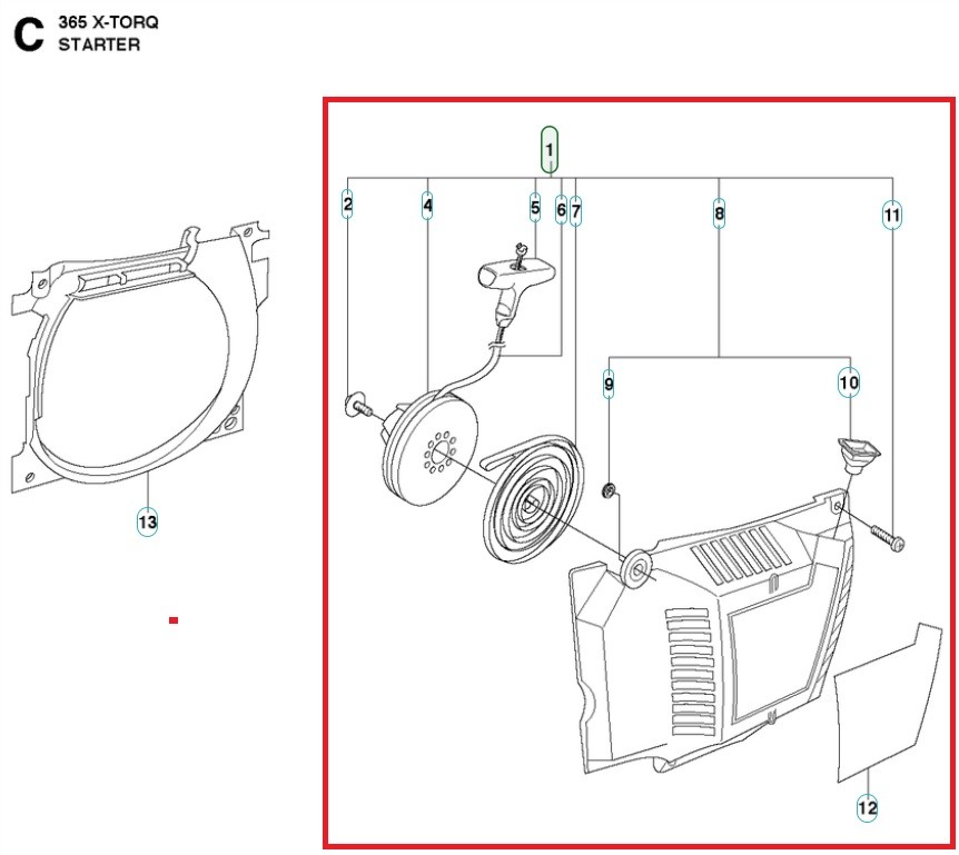 Demaror drujbă Husqvarna 365, 365 X-Torq, 372 XP, 372 XP X-Torq.