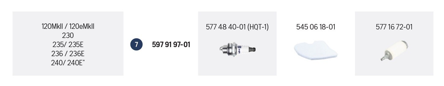 Kit de Intretinere drujba Husqvarna 120 Mark II, 235, 235E, 240, 240E, 236, Bujie, Filtru aer, Filtru combustibil