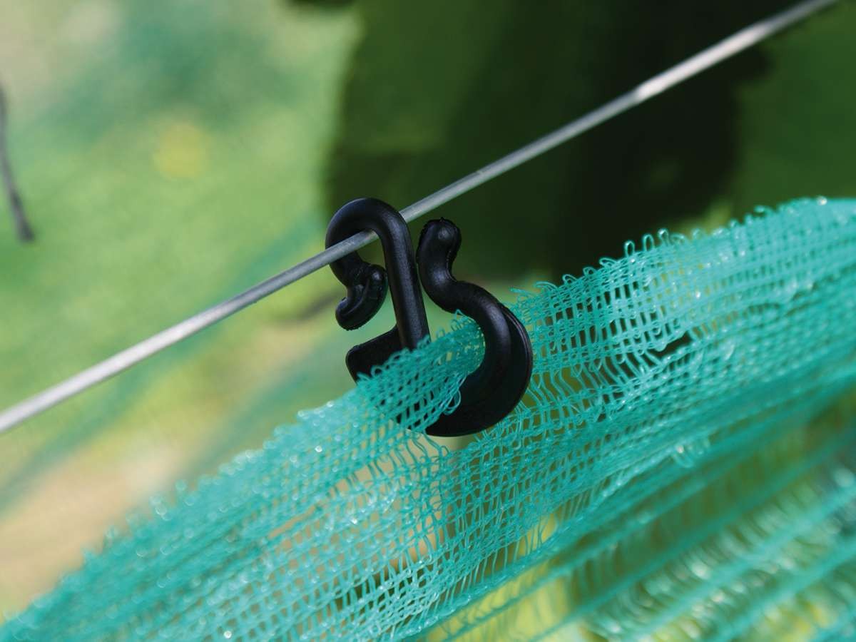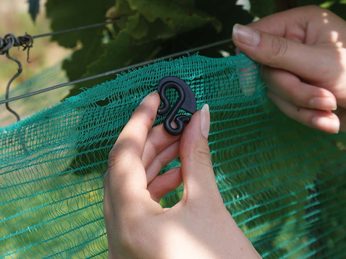 Cârligele se agață în orificiile de fixare ale plaselor laterale WitaNet și se prind de sârma de tensionare. Recomandăm utilizarea a 1 până la 2 cârlige tip S sus și jos, pentru fiecare metru. Potrivite și pentru fixarea: plasei de protecție împotriva viespilor WitaFlex și plasei economice de protecție a strugurilor WitaNet.